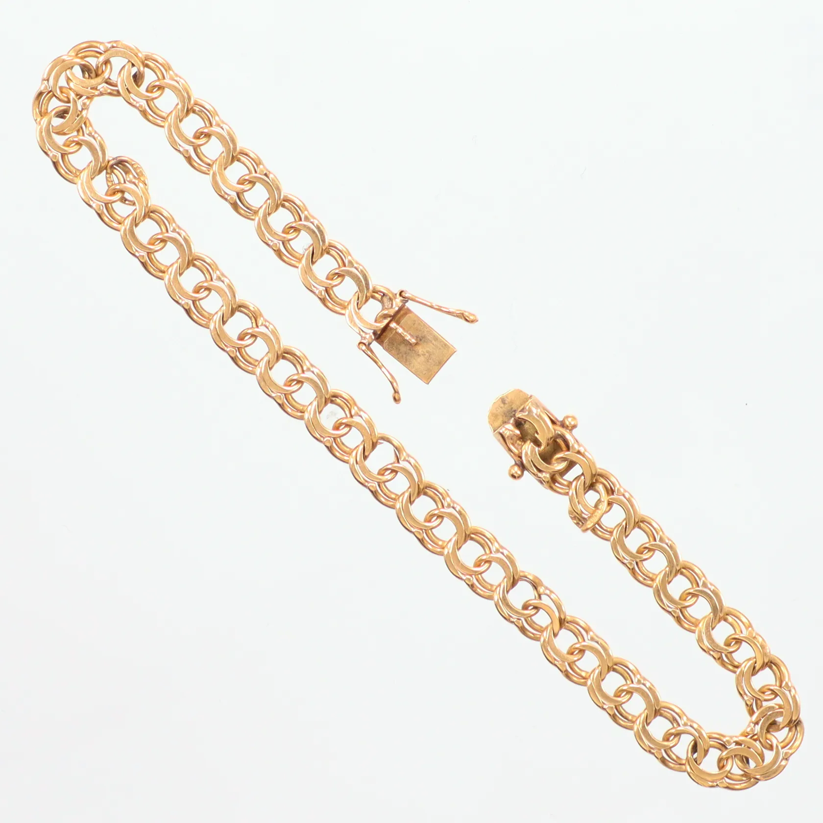 Armband Bismarck längd 19cm, bredd 5,7mm, Hildens Guldvaror, år 1963, skadat lås, 18K Vikt: 9,2 g.