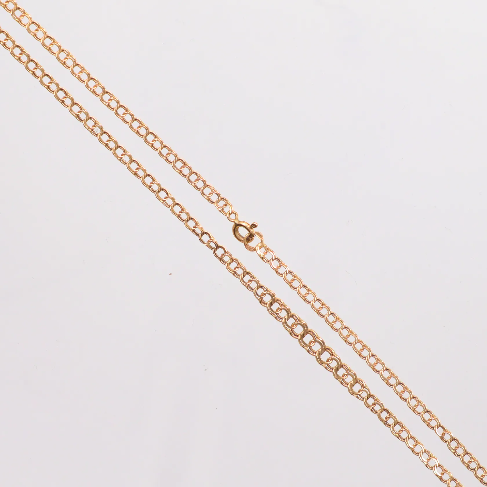 Kedja doserad Bismarck längd 43,5cm, bredd 3-4,5mm, ojämn länk, 18K Vikt: 5,8 g.