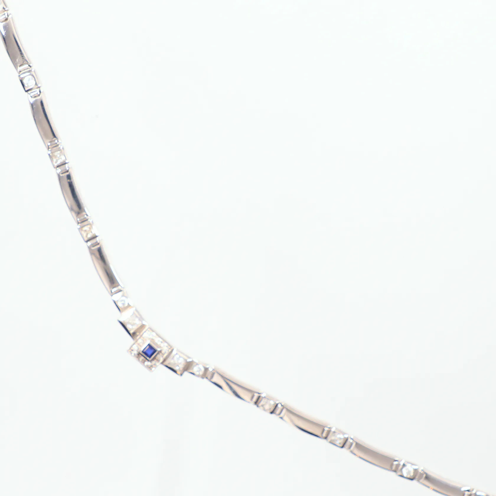 Collier vitguld längd 23cm, bredd 5,1mm-9,8mm, liten blå sten, små vita stenar, 14K Vikt: 25,8 g.