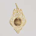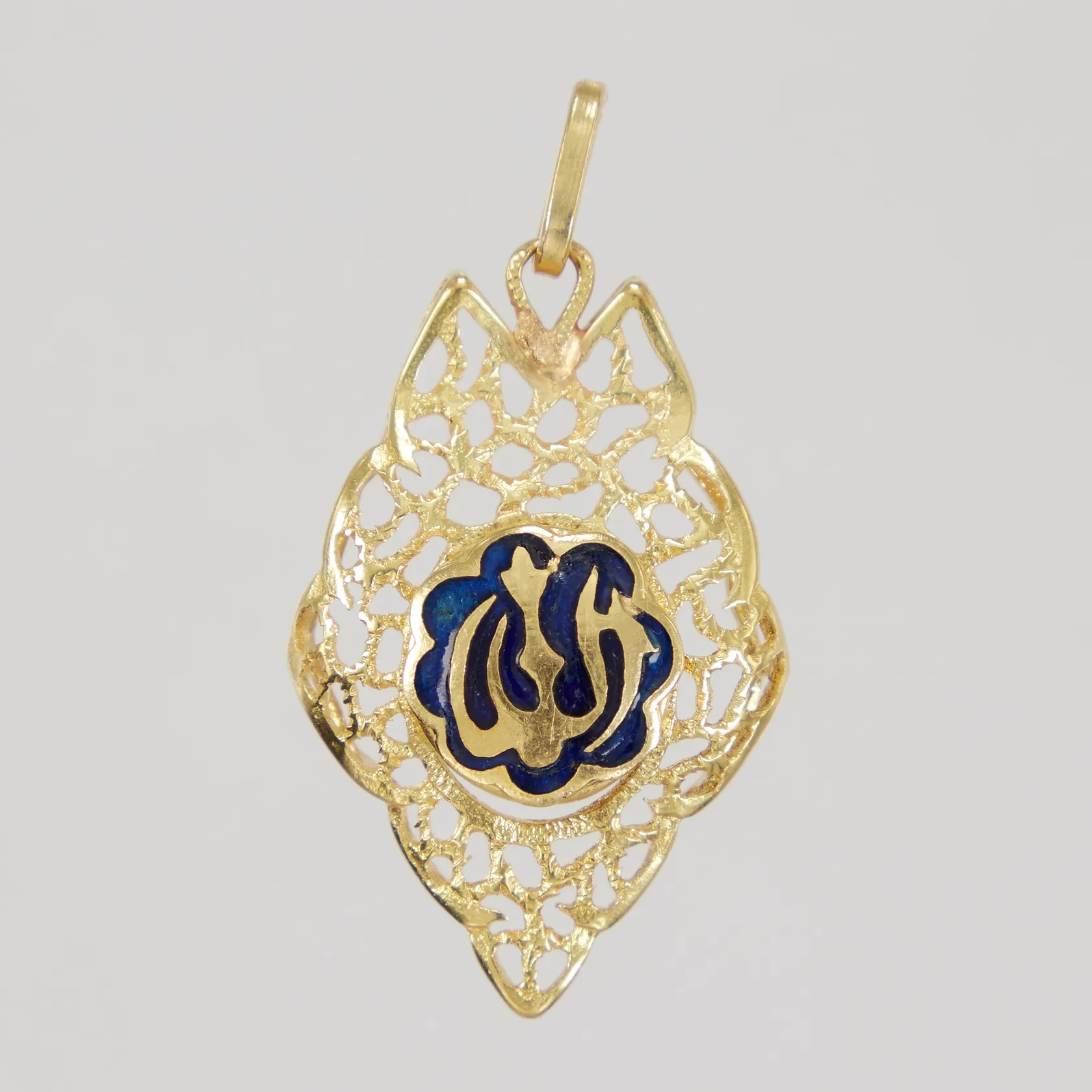 Hänge, längd 41mm, bredd 23mm, filigran, Allah, blå emalj, 18K Vikt: 5 g.