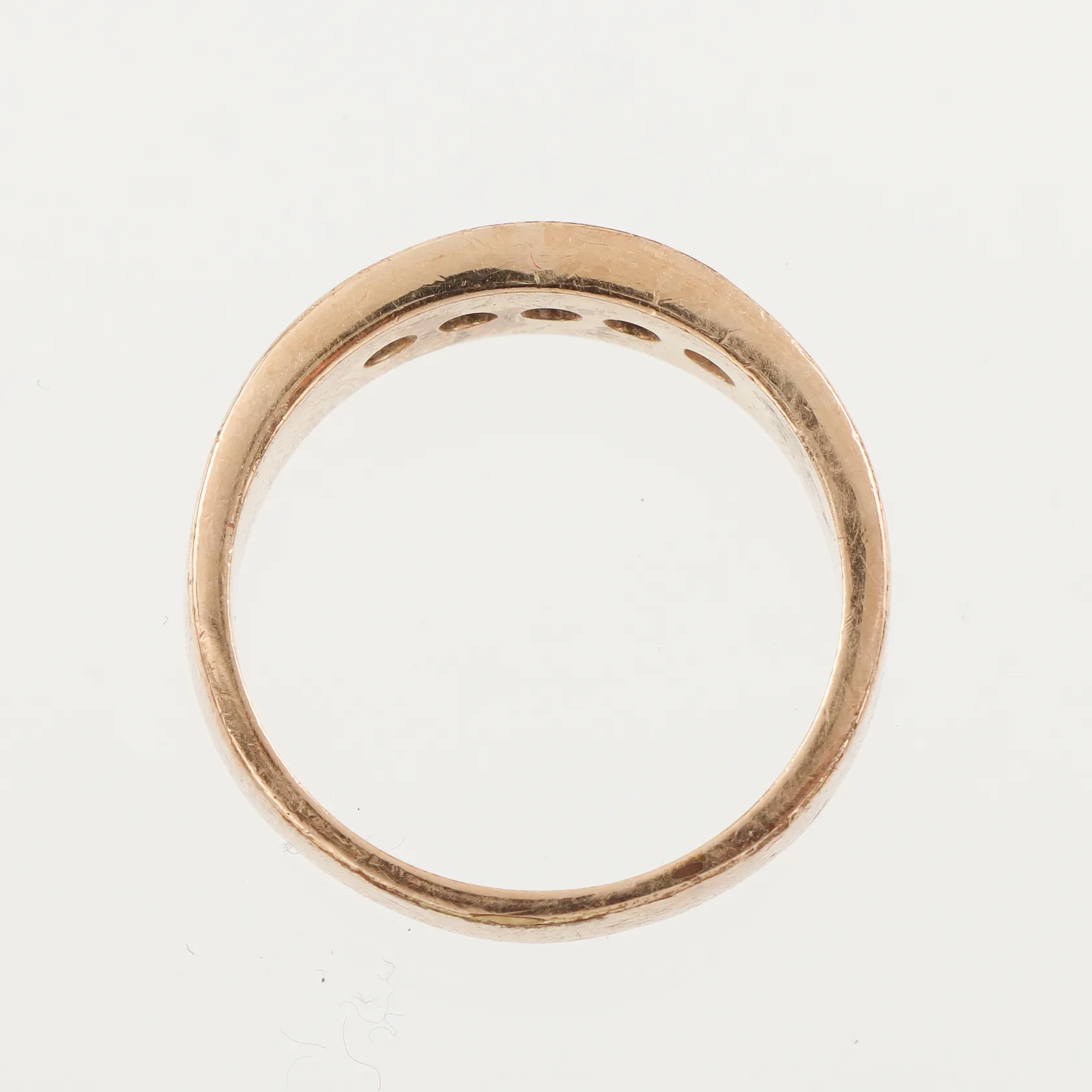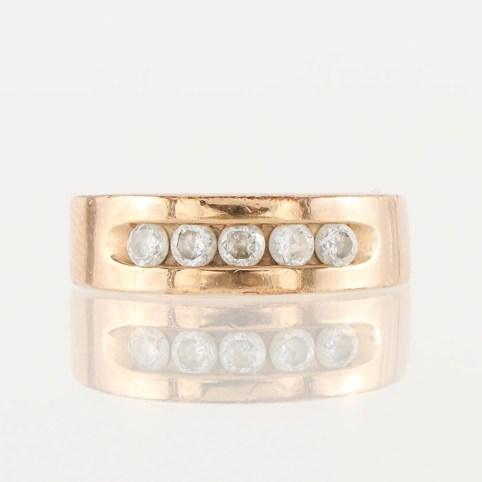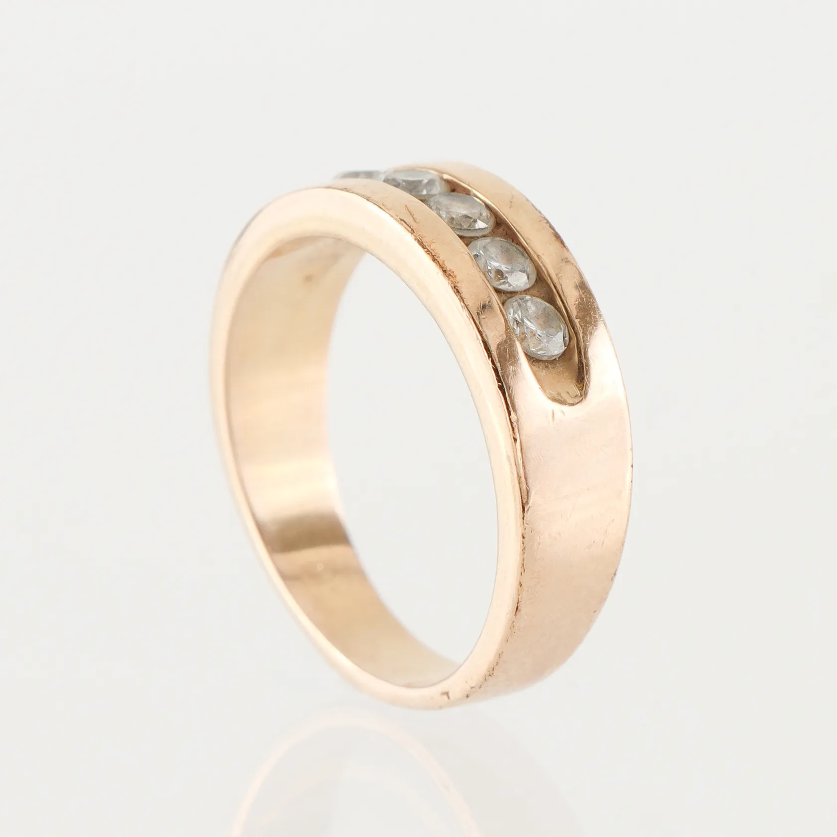 Ring med vita stenar, storlek 17 mm, bredd 3.8-6.1 mm, 18k. Vikt: 3,8 g.