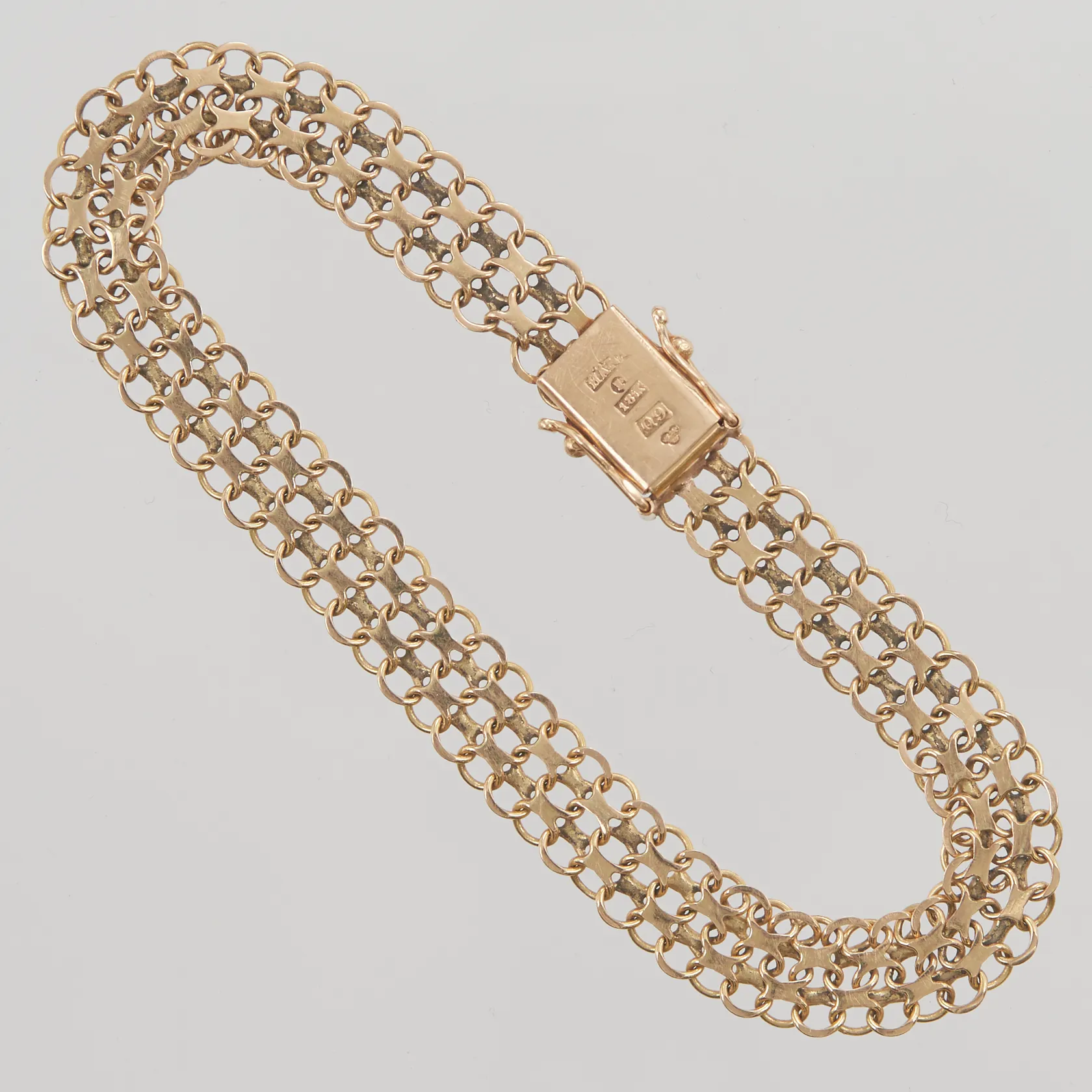 Armband x-länk 19,5cm, bredd:8mm, något skeva länkar, 18K 9,1g. Vikt: 9,1 g.