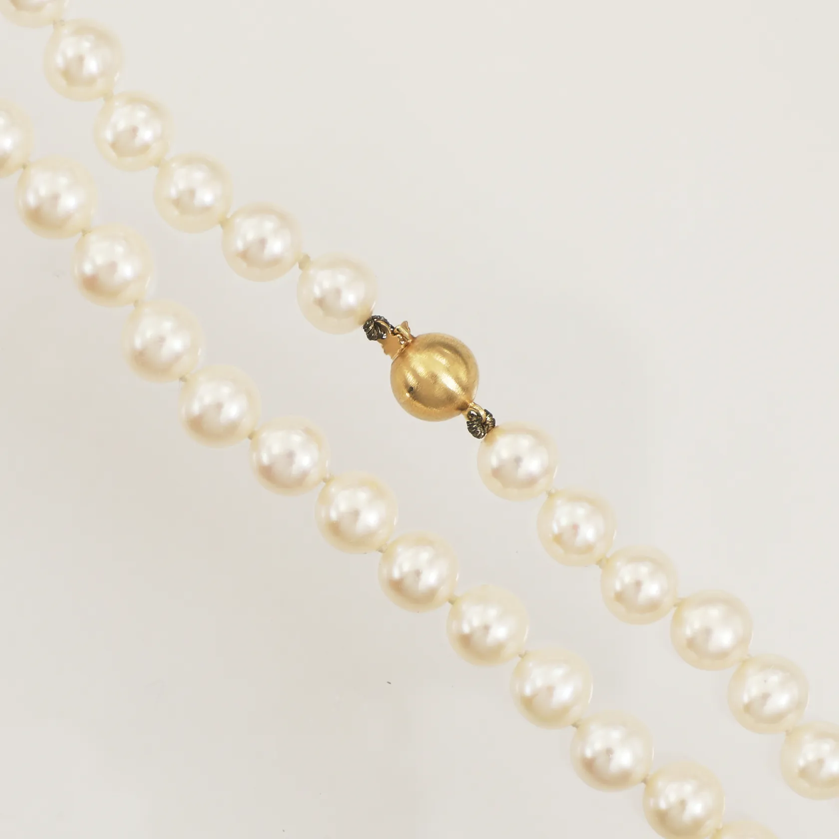 Pärlcollier med odlade sötvattenspärlor ca Ø8,2-8,4mm, längd 44,5cm, guldlås i 18K.