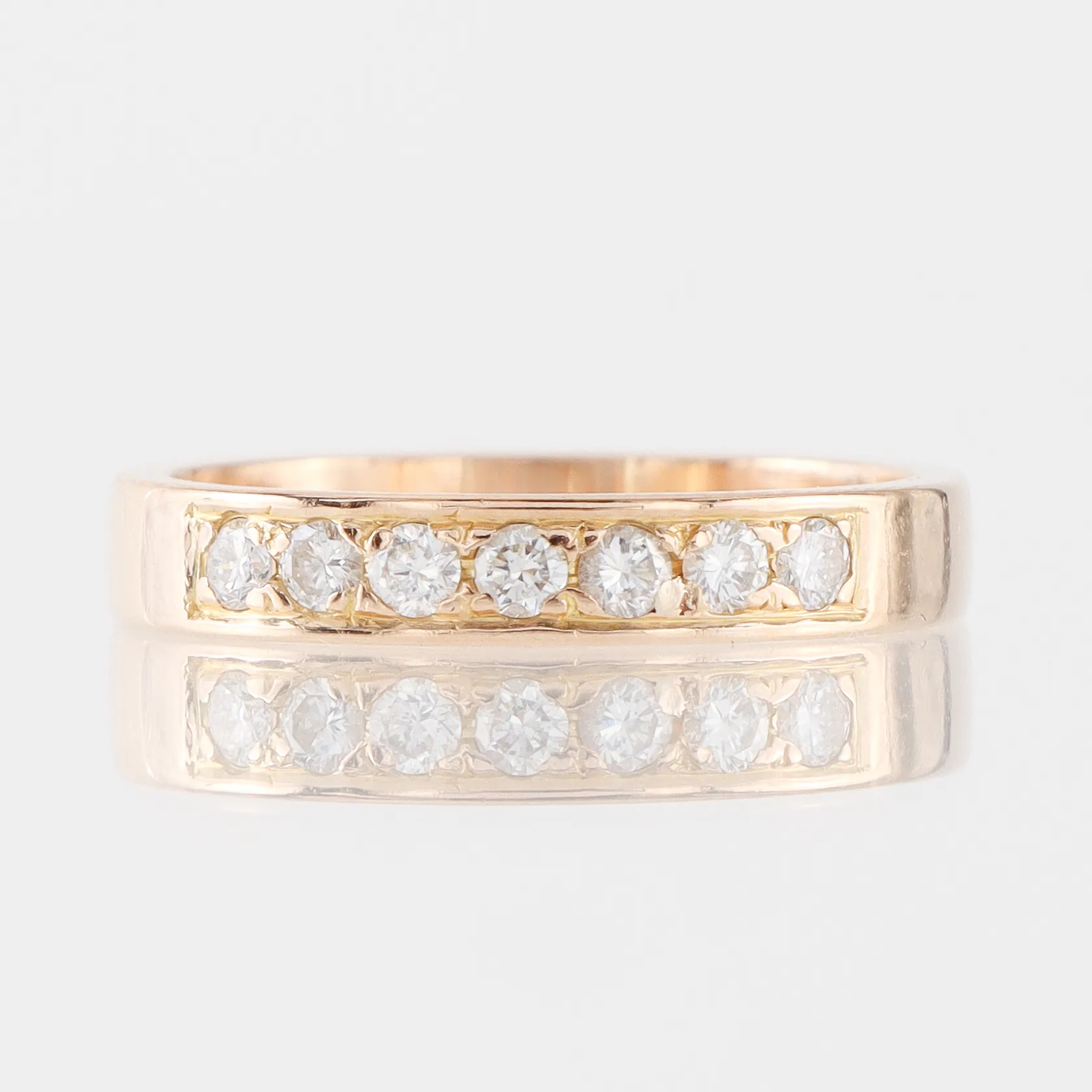 Ring med 8 st diamanter på 0.21 ct WVS, storlek 15 ¾ mm, bredd 3.1 mm, 18k. Vikt: 3 g.