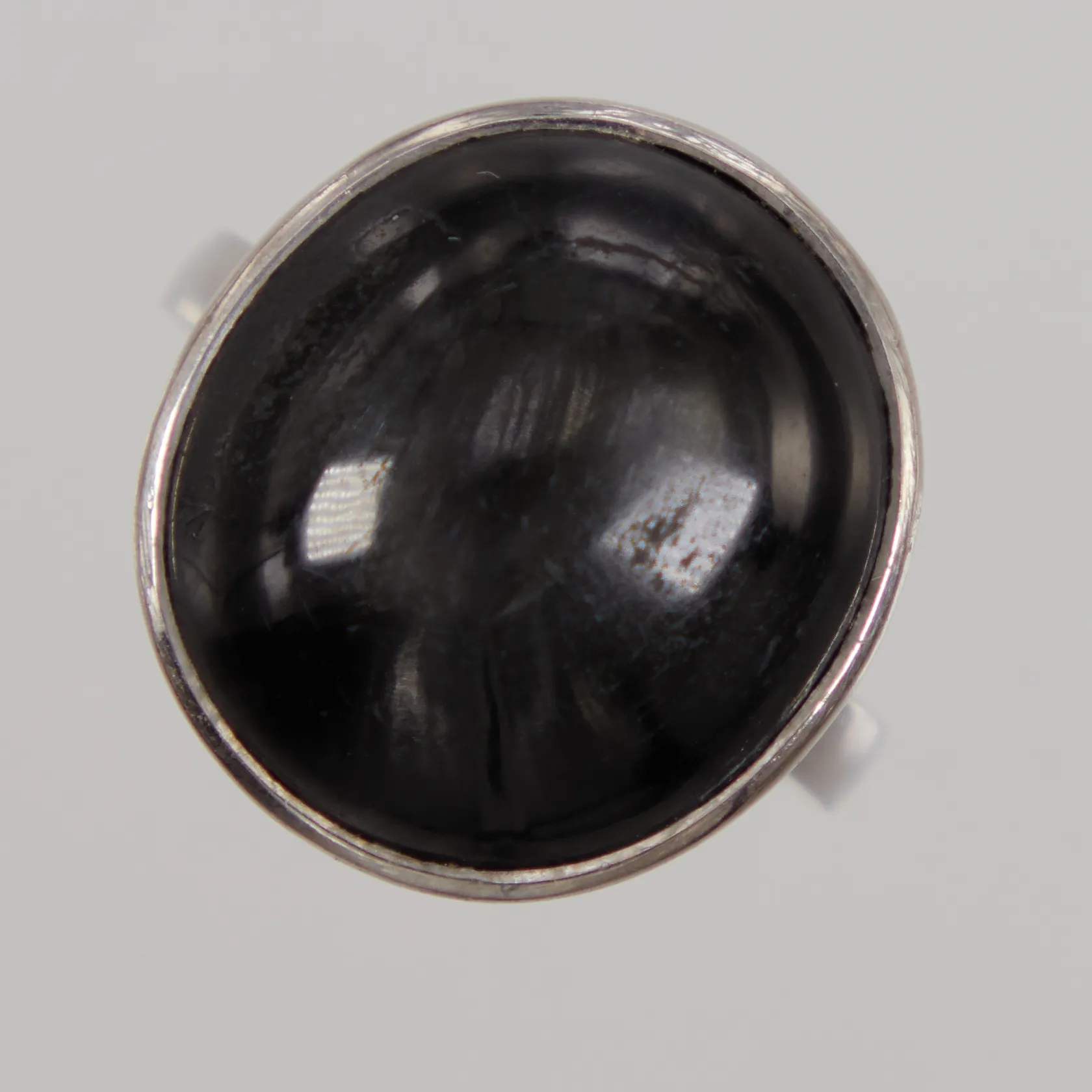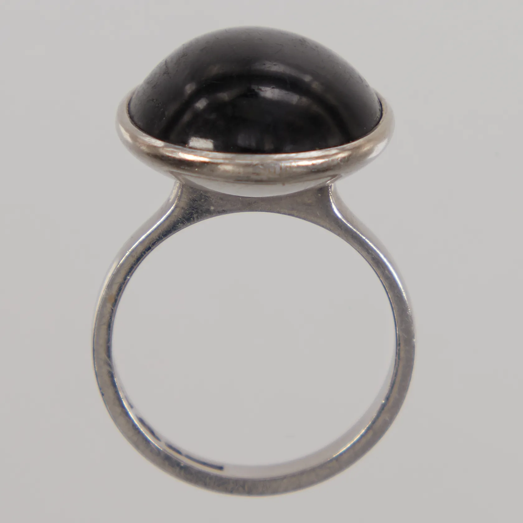 Ring med svart sten stl 17½, bredd 2,5-18,8mm, möjligen stjärnsafir, vitguld, 18K, Bruttovikt: 9,9g. Vikt: 9,9 g.