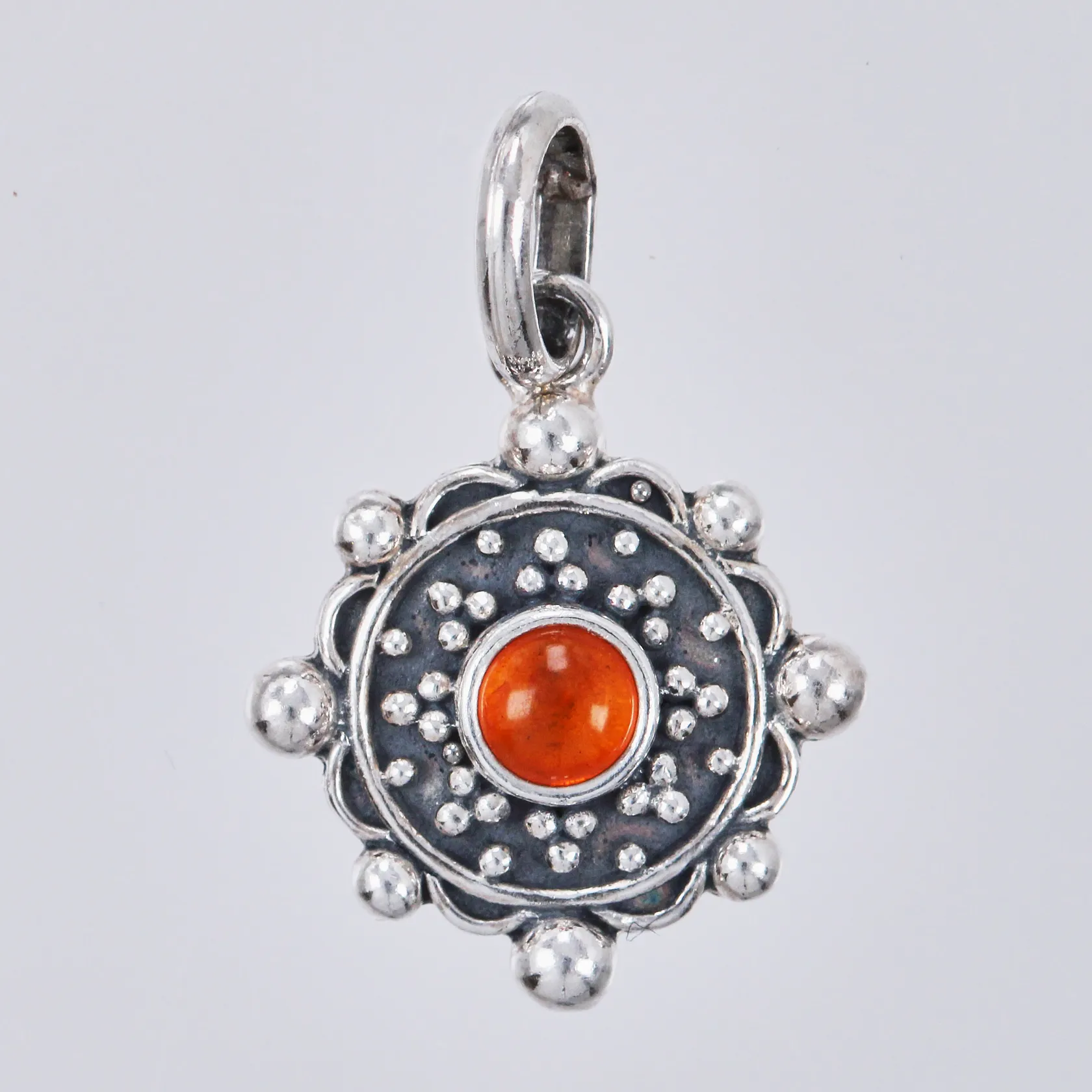 Hänge med orange sten längd: ca 2,2cm bredd: ca 15mm 925/1000 silver Vikt: 1,8 g.