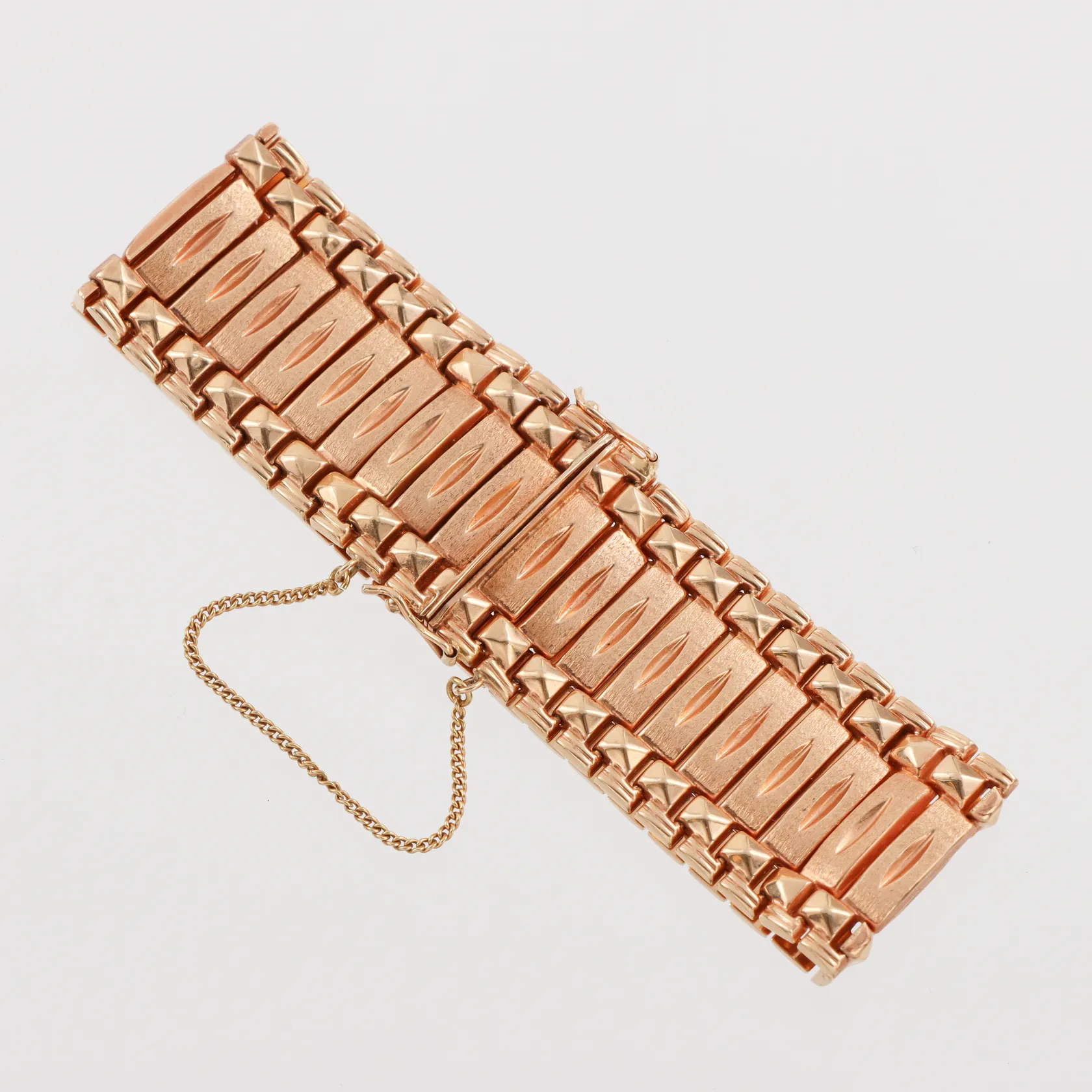 Armband längd ca 20 cm, bredd 24.3 mm, Italien svag stämpel, 18k. Vikt: 41,9 g.