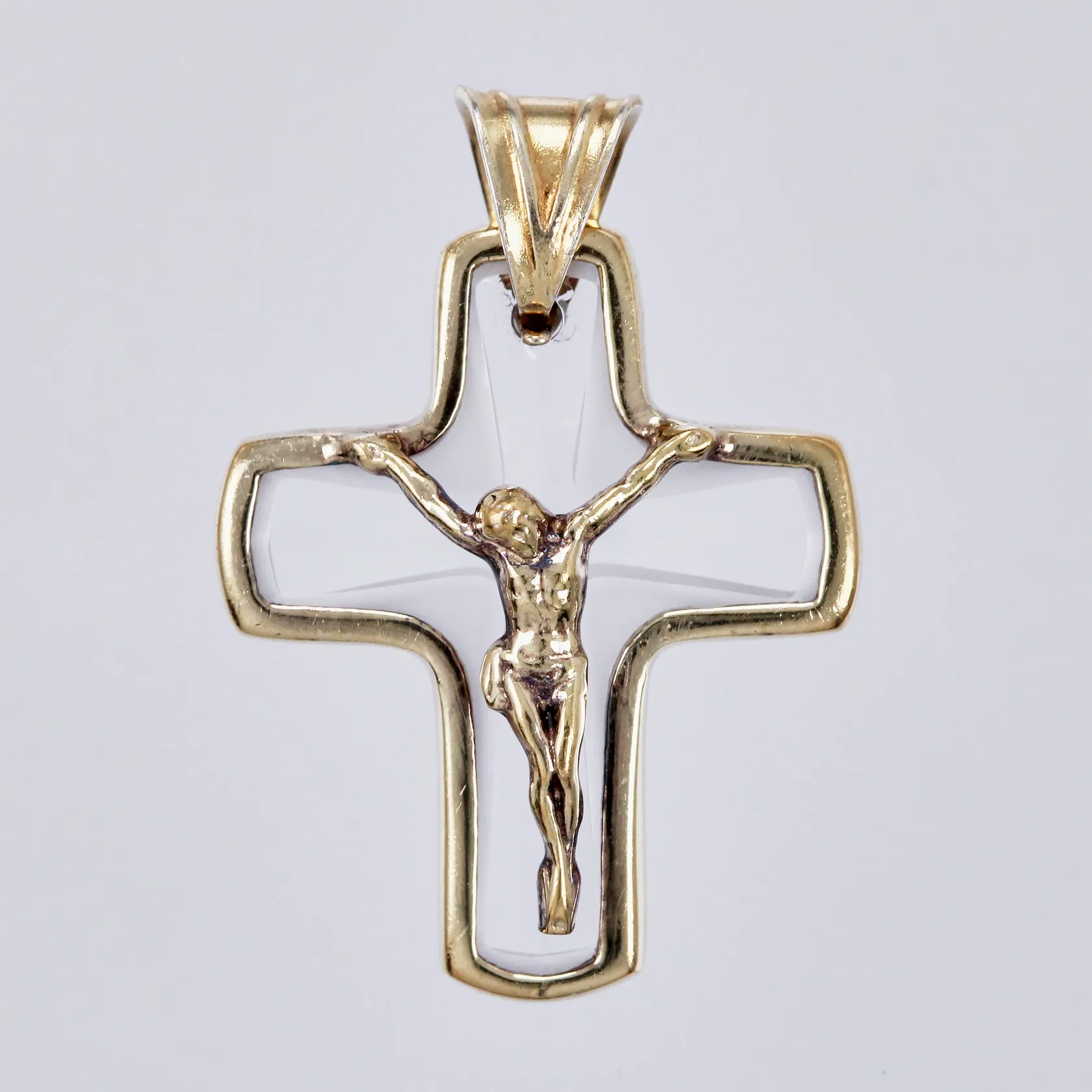 Hänge Kors med vit sten längd ca 2,4cm bredd ca 5-17mm, förgyllt 925/1000 silver Vikt: 2,4 g.