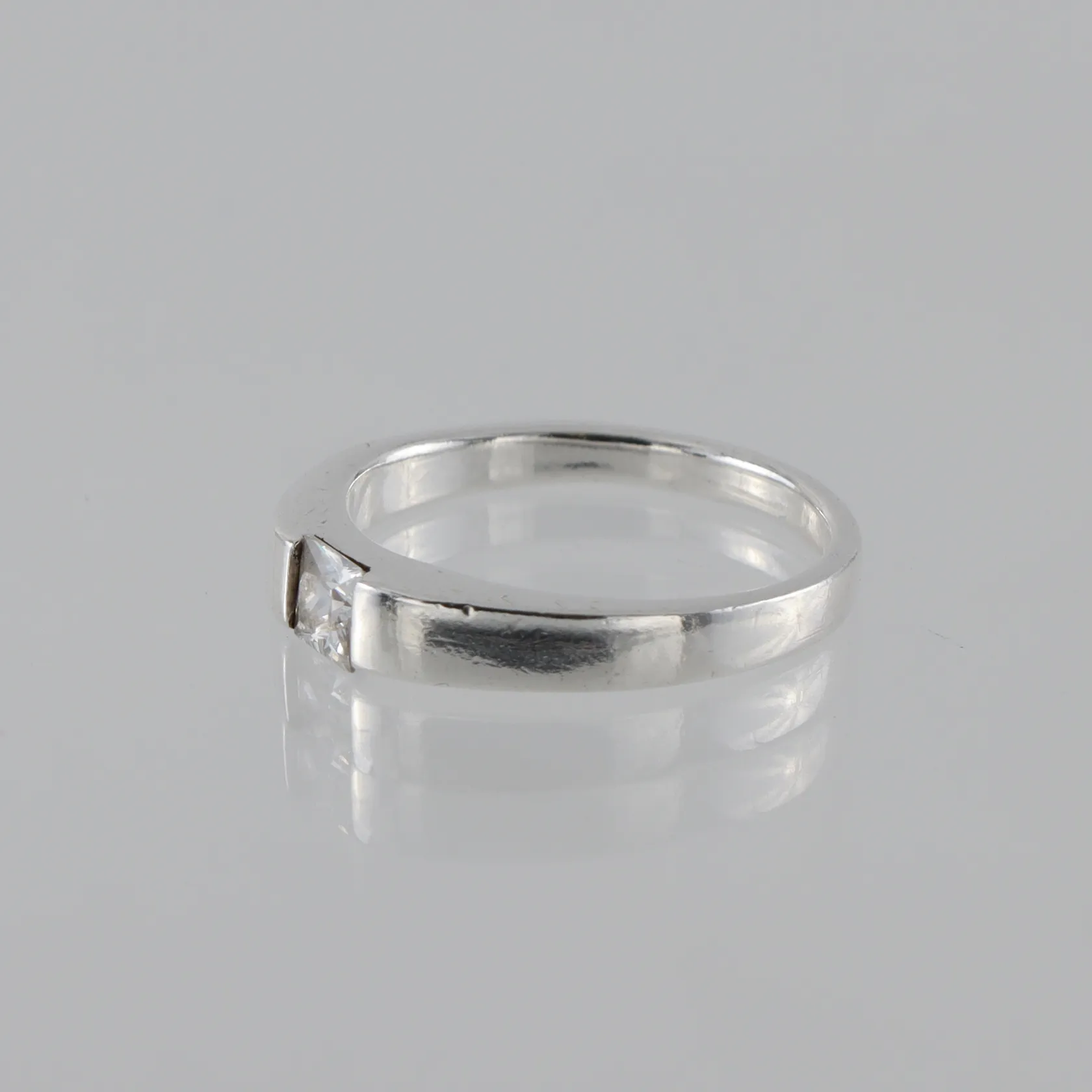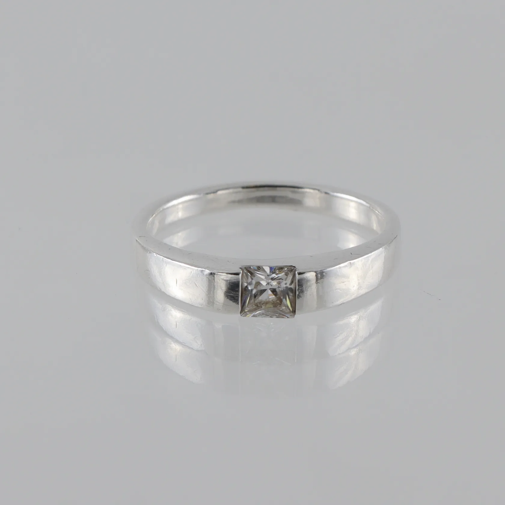 Ring med prinsesslipad sten kubis zirkonia, stl 16¾mm, Guldfynd, silver Vikt: 3 g.