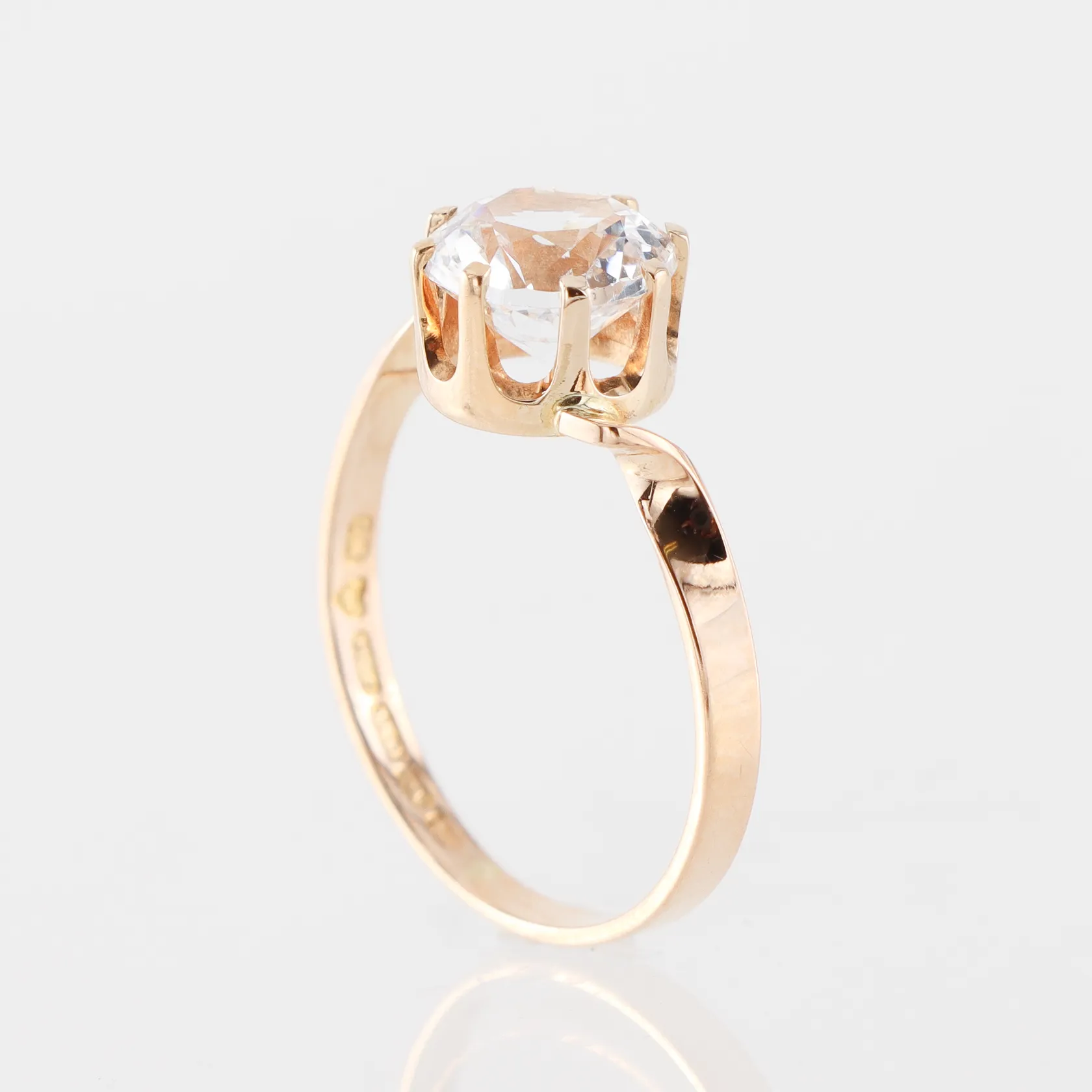 Ring med sten, stämplad Finland, storlek 16 mm, bredd 1.7-7.3 mm, 18k. Vikt: 1,7 g.