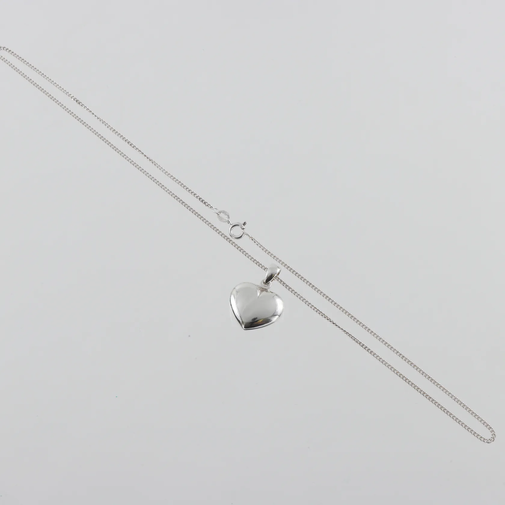 Halssmycke med hjärta, Pansar 46cm bredd 1,6mm, höjd hjärta med ögla 25mm, silver Vikt: 6,4 g.