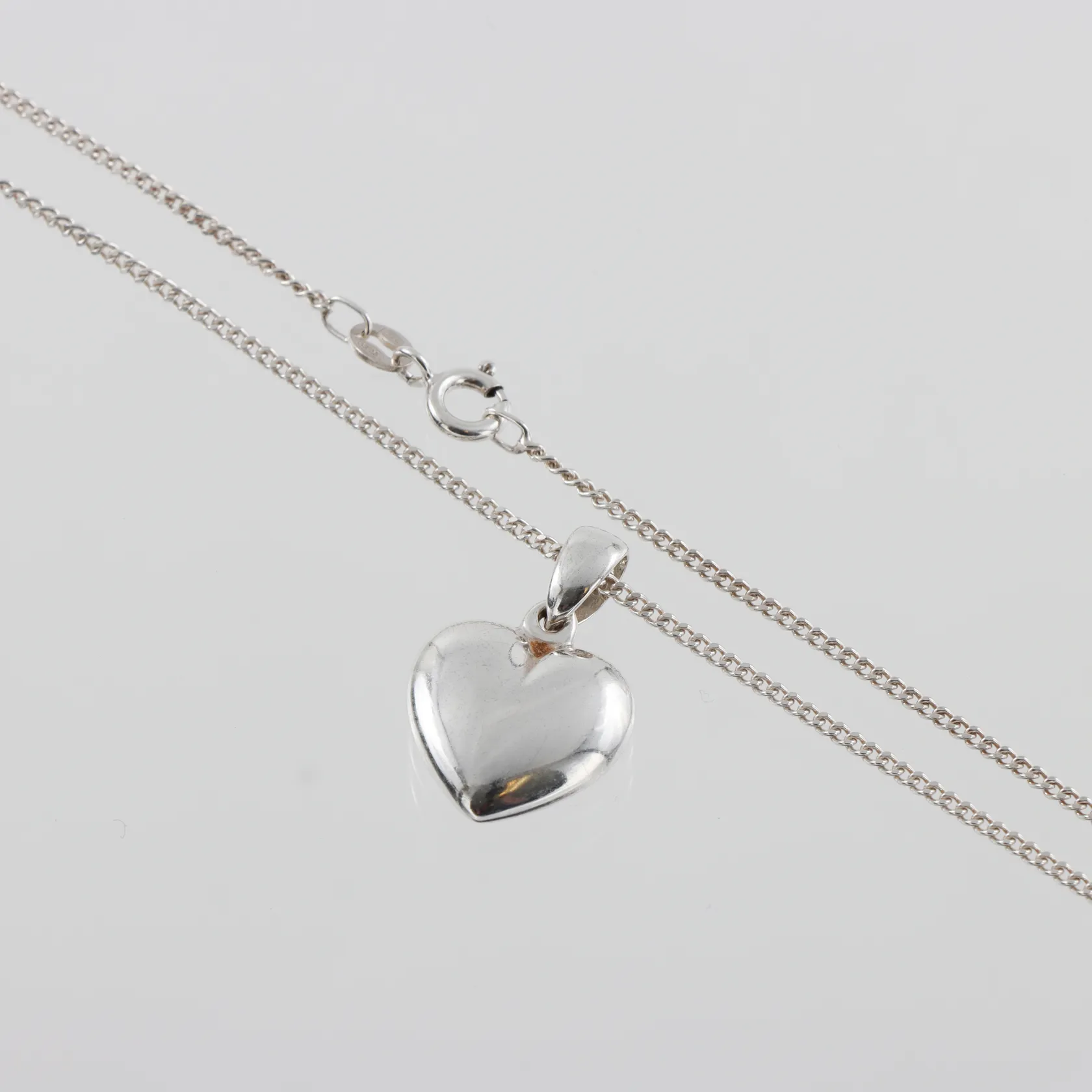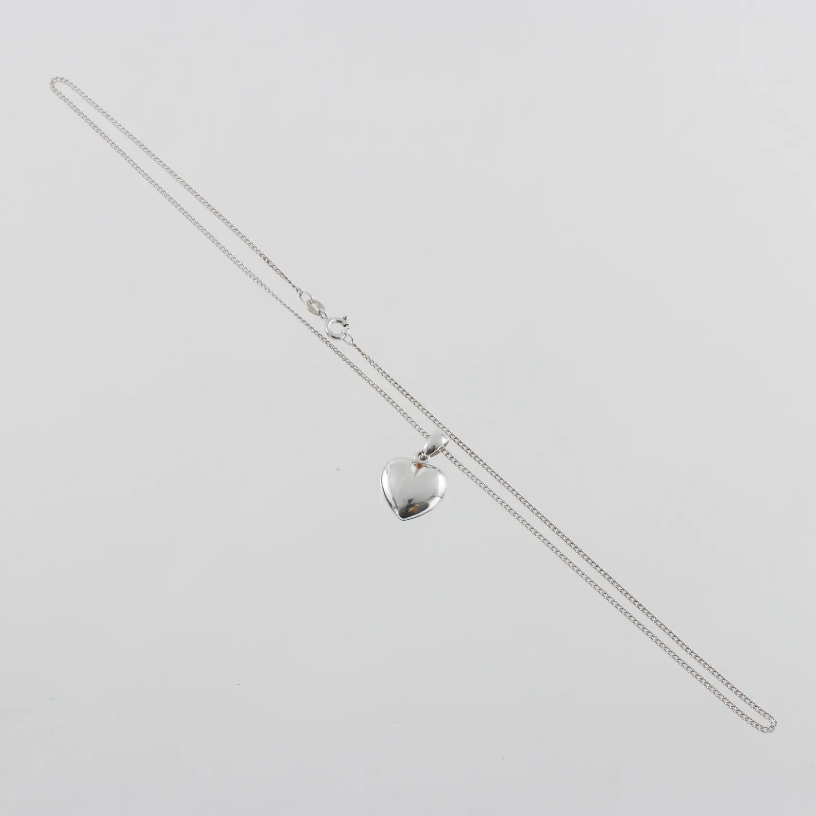 Halssmycke med hjärta, Pansar längd 46cm, bredd 1,5mm, höjd med ögla hjärta 23mm, silver Vikt: 5,1 g.