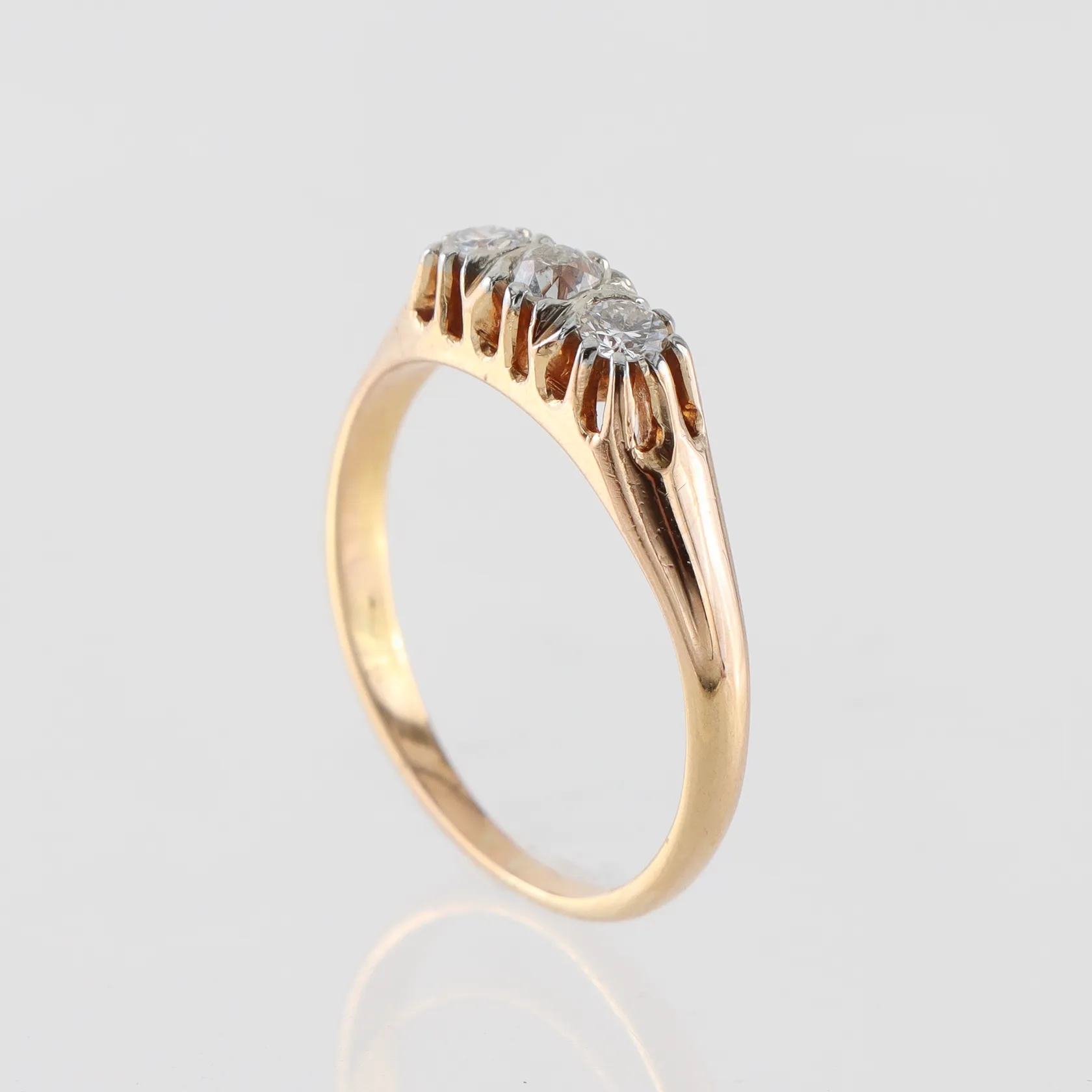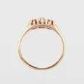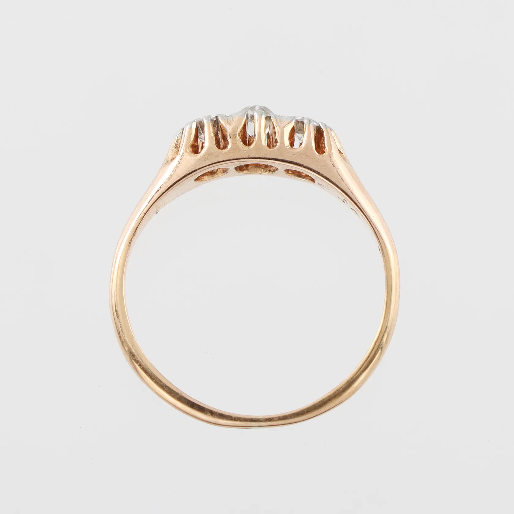 Ring med diamanter ca 1x0,08ct och ca 2x0,05ct, storlek 15 ¾ mm, bredd 1.2-3.9 mm, 18k. Vikt: 2,2 g.