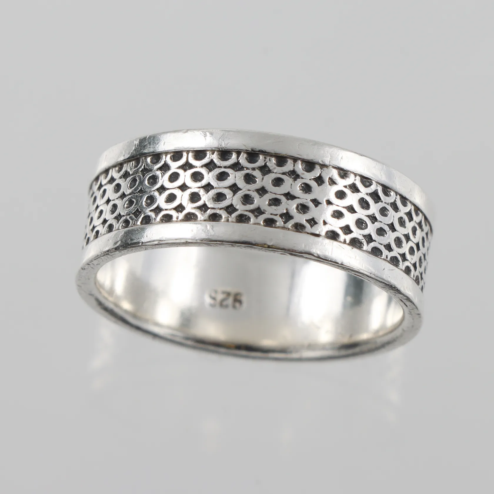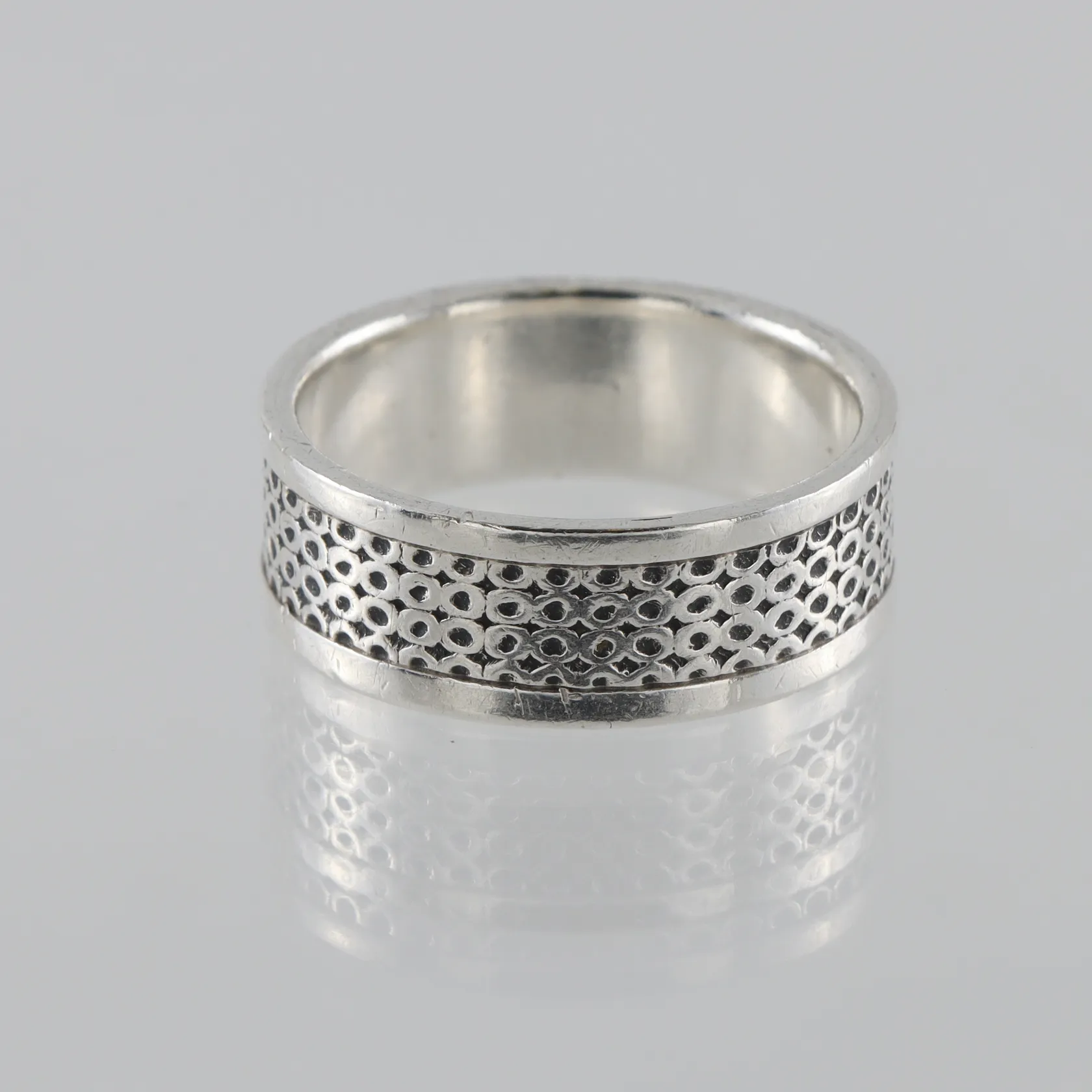 Ring mönstrad , stl 21½mm, bredd 8,4mm, silver Vikt: 9,3 g.