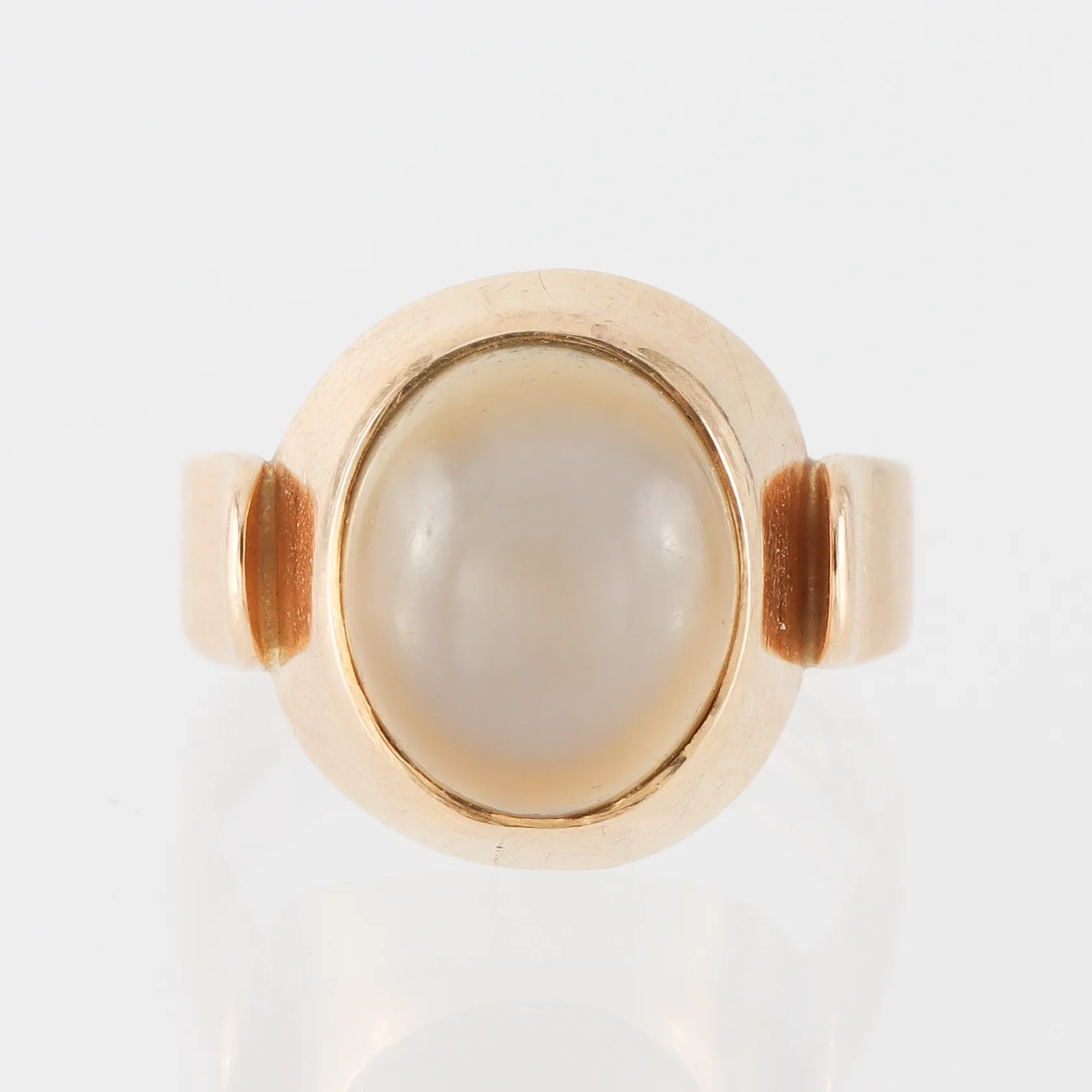 Ring med sten Stigbert Heribert Engelbert AB Atockholm ,storlek 17 mm, bredd 2.8-14.9 mm,18k. Vikt: 4,9 g.