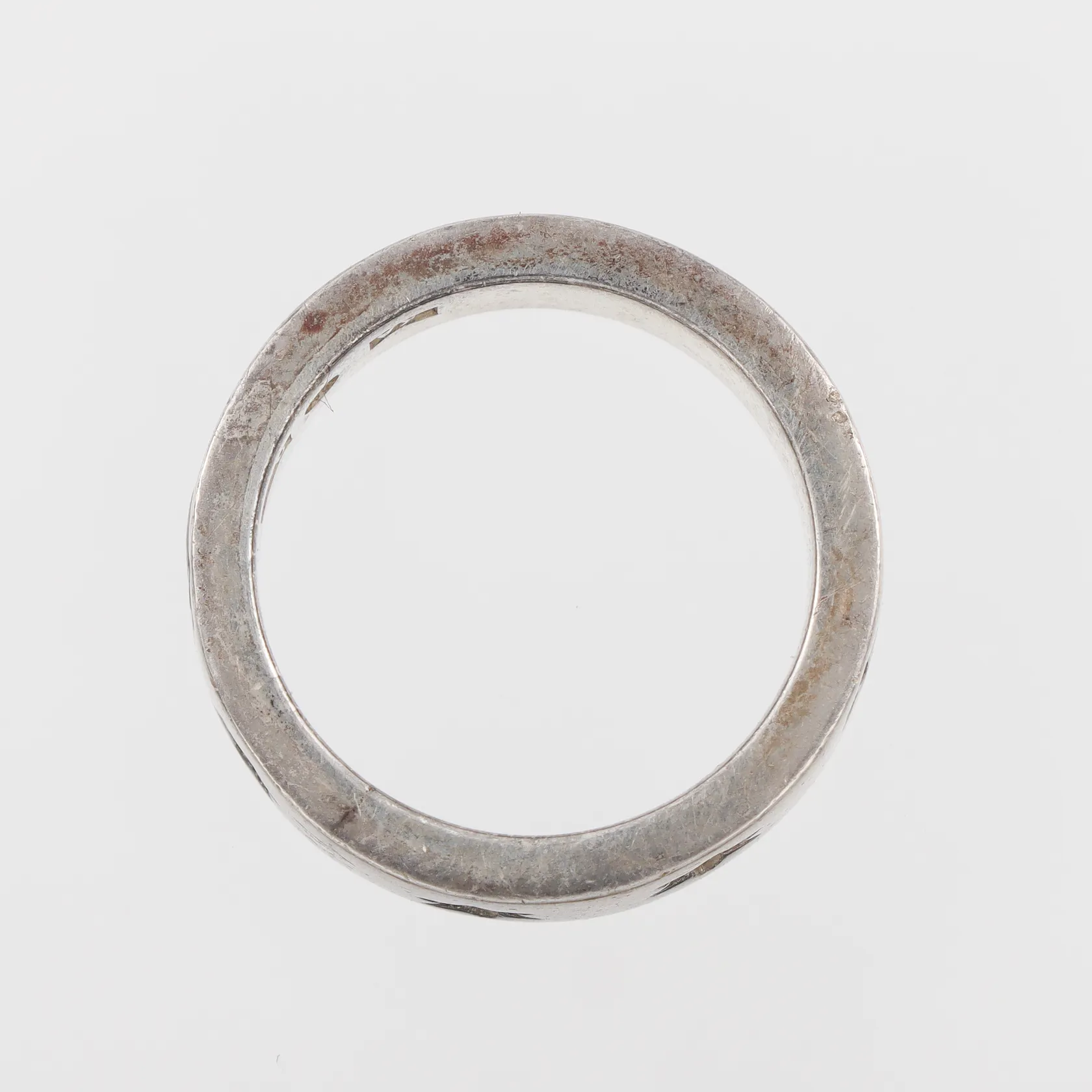 Ring, dekor med stjärnor,Ika Guldsmed Stockholm, storlek 17 ½ mm, bredd 6.4 mm,silver. Vikt: 9,3 g.