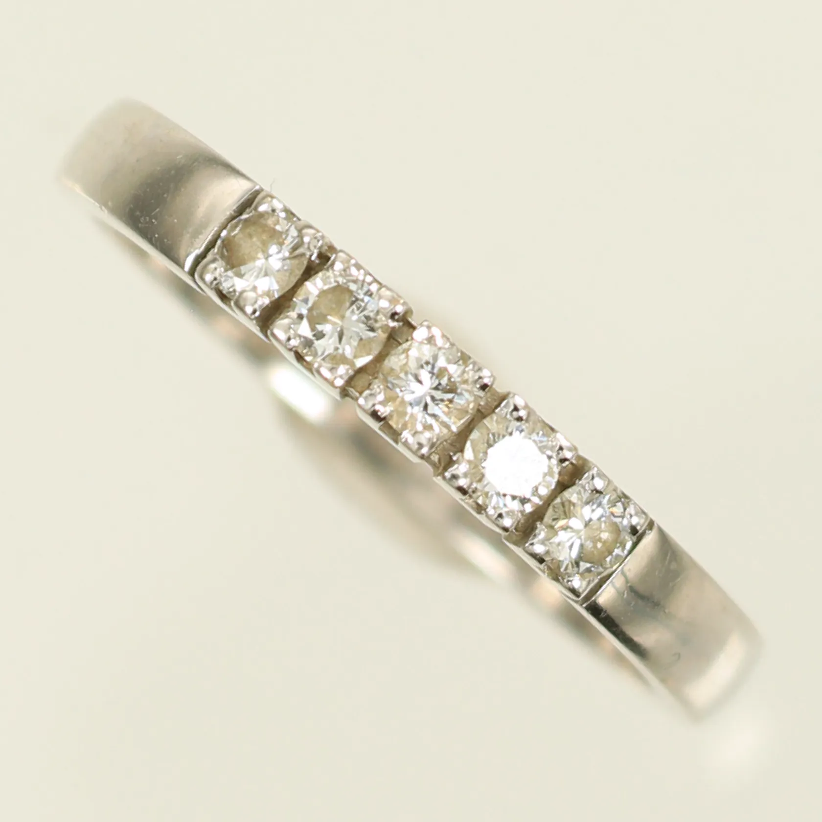 Ring med diamanter totalt 0,25ct enligt gravyr, W VS, stl 17¾, bredd 3mm, 18K, 2,8g Vikt: 2,8 g.