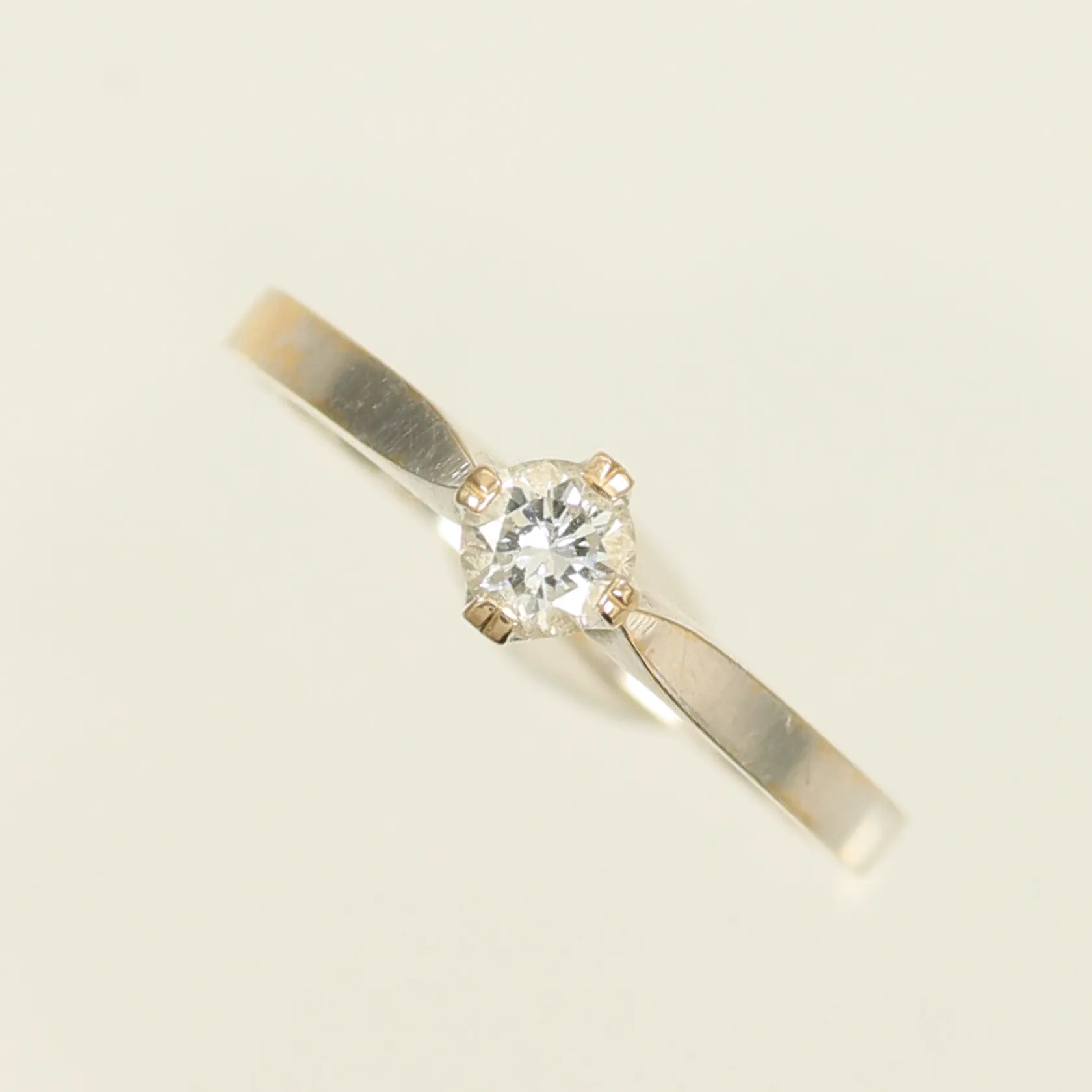 Ring med diamant tot 0,25ct enligt gravyr, T W P1, stl 17¾, bredd 1,5-5mm, 18K, 2,6g Vikt: 2,6 g.