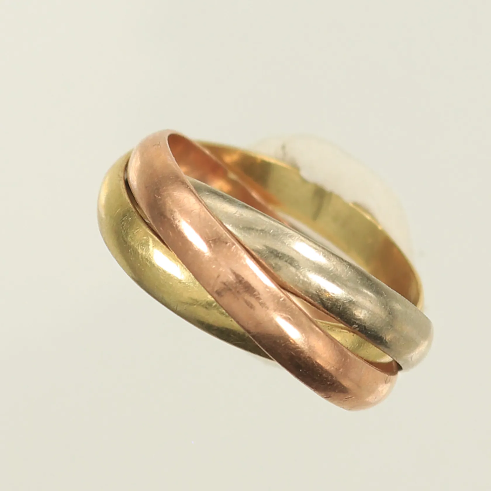 Ring trefärgad stl 15¾, bredd ca 8mm, 14K, 4,8g Vikt: 4,8 g.