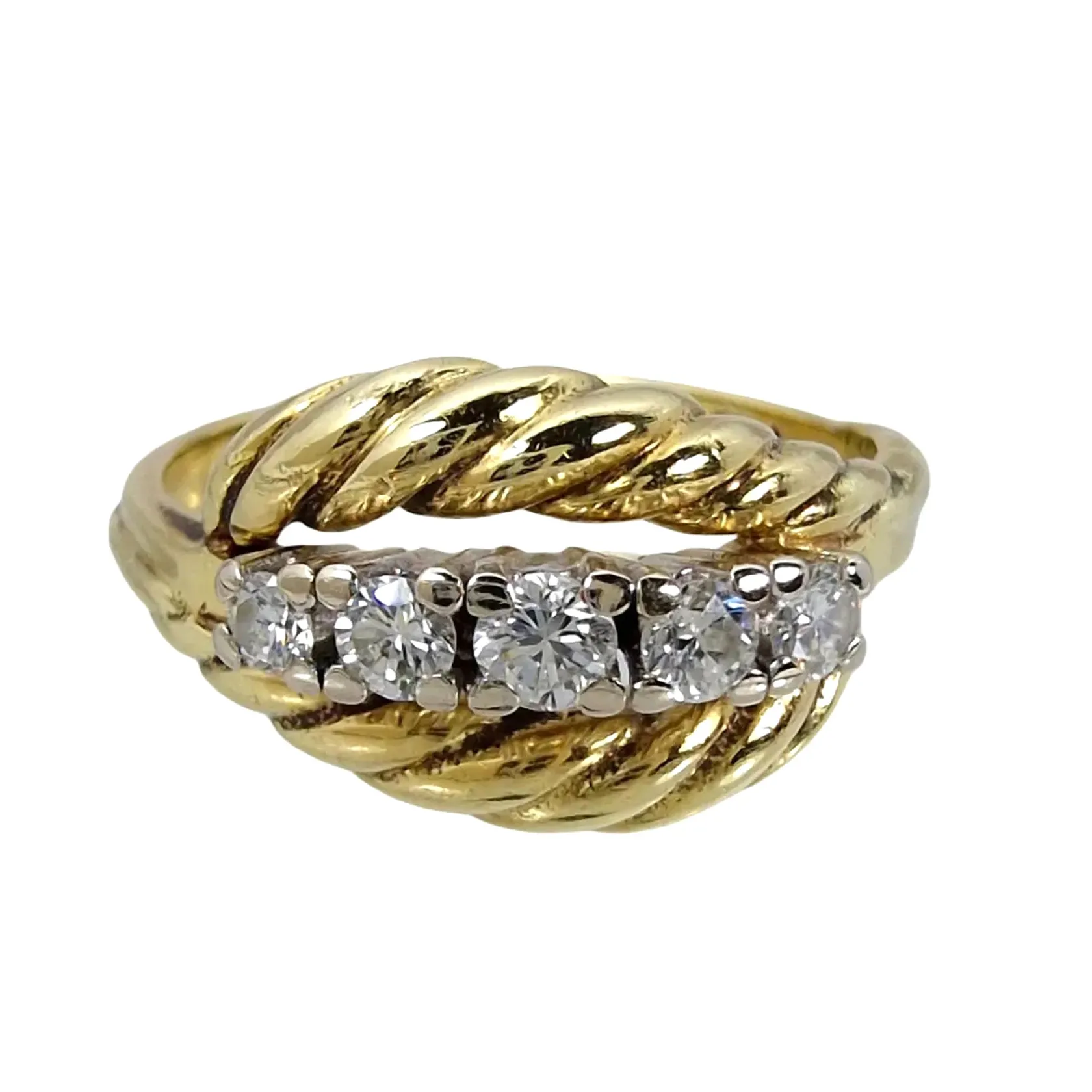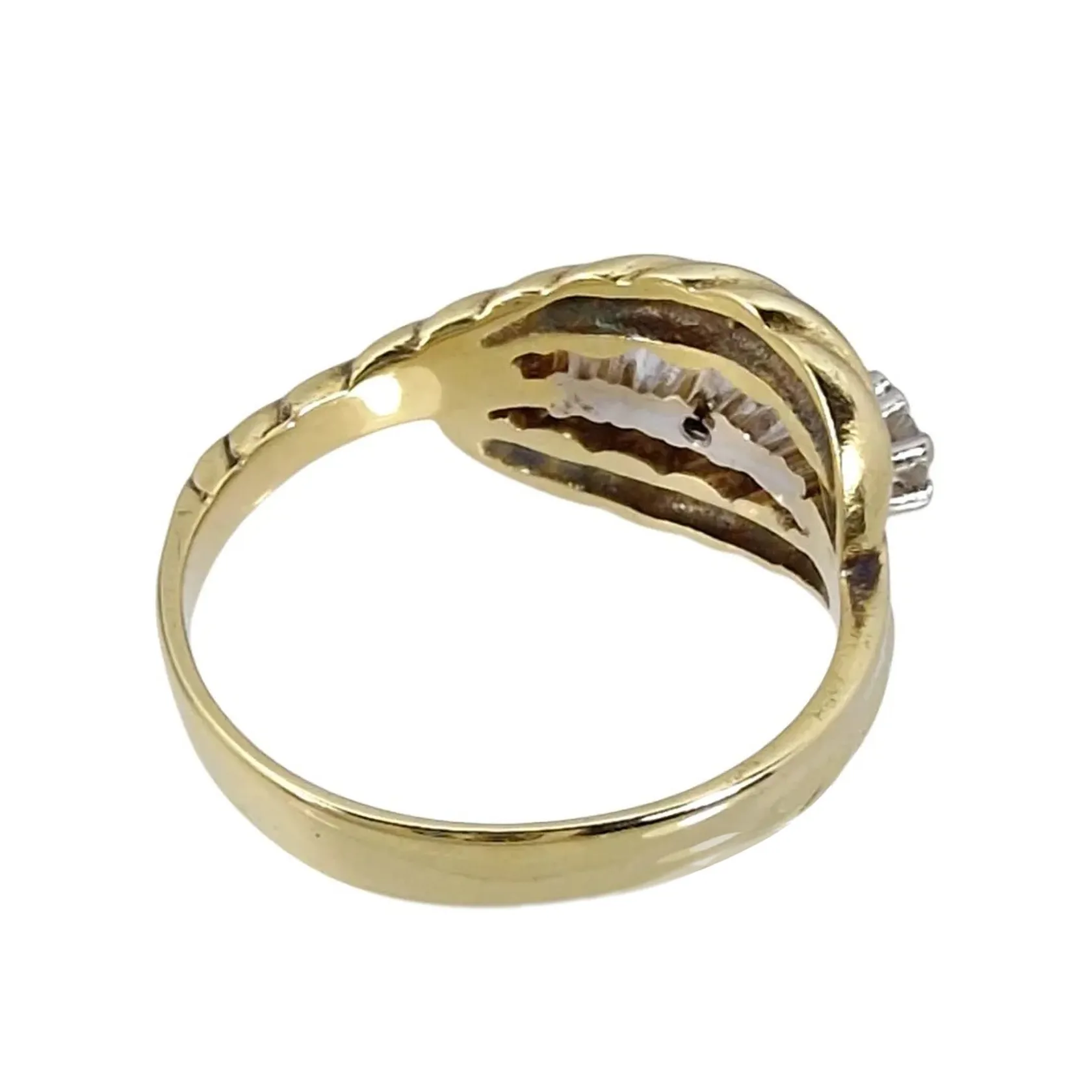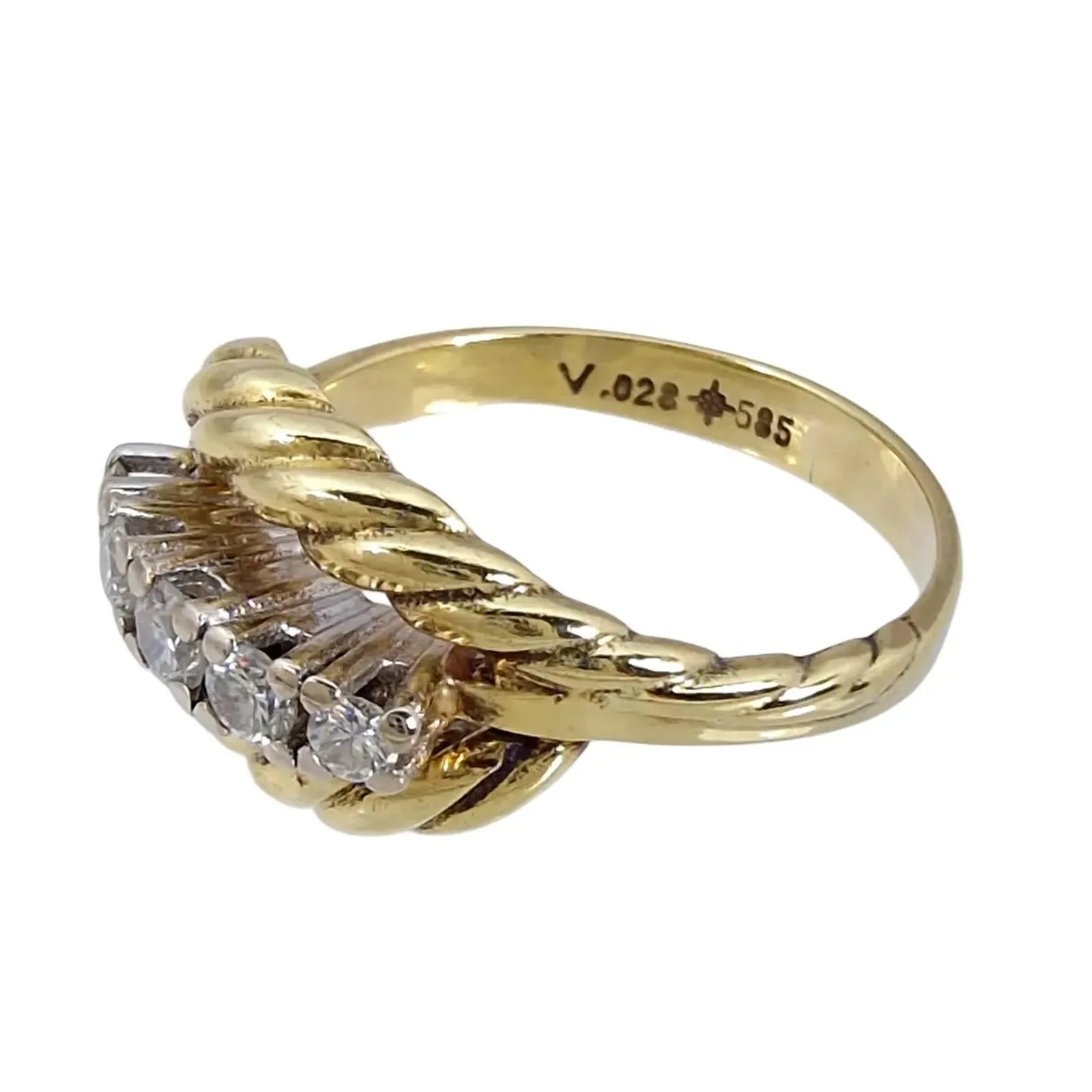 Diamantring, 14K guld, Diamanter 5 st - totalt 0,28ct - stämplat på skenans insida, Ø17½ mm, bredd 2-10 mm, fint skick Vikt: 4,5 g.