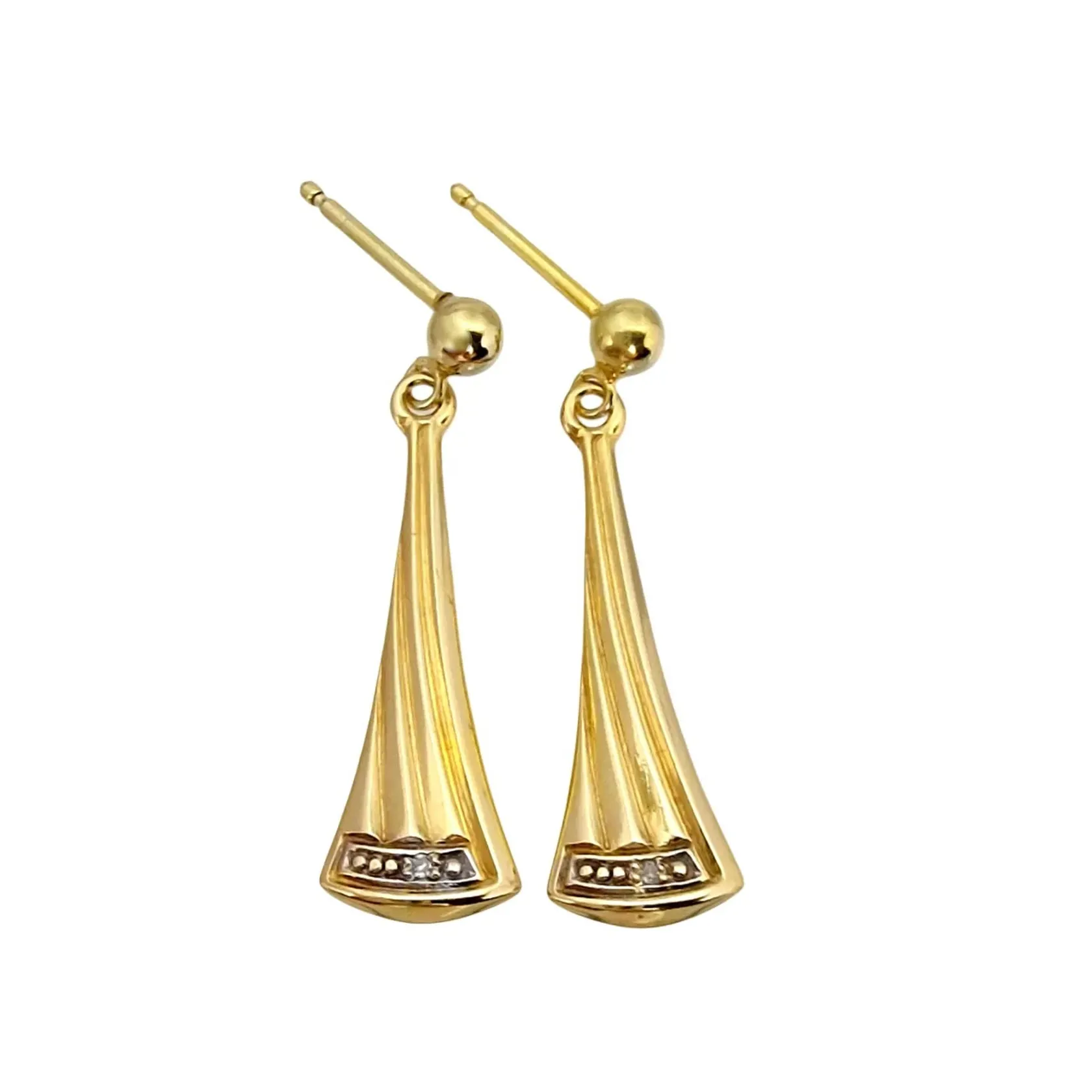 Örhängen, 14K guld, Diamanter 2 x 0,003ct, örhängenas storlek 8,5 x 29 mm, fint skick, ploppar saknas Vikt: 1,7 g.