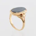 Ring med sten, 18k,storlek 18 ¼ mm, bredd 2.3-20.2 mm. Vikt: 6,9 g.