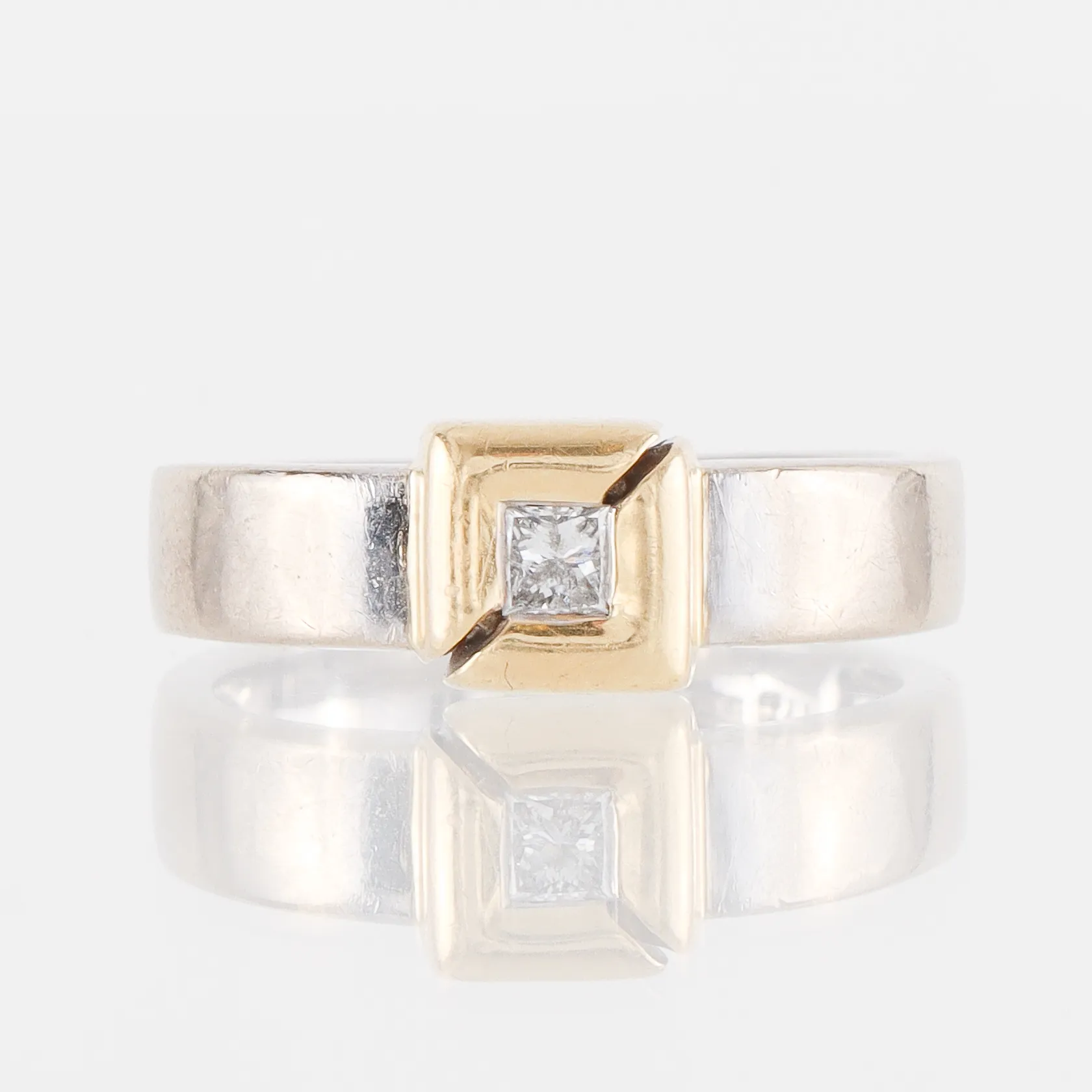 Ring med diamant 0,11ct prinsesslipad , stl 17¾, Guldfynd, vitguld, infattning i gulguld, 18K. Vikt: 6 g.