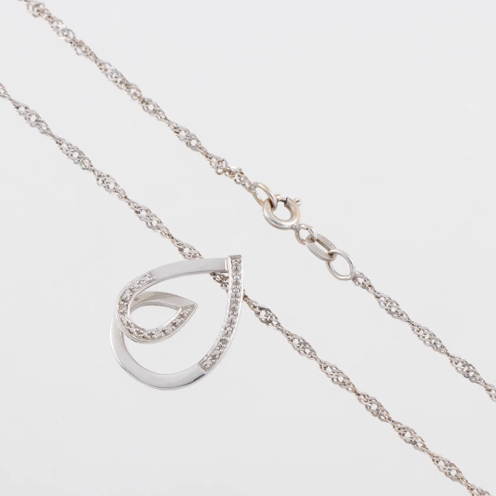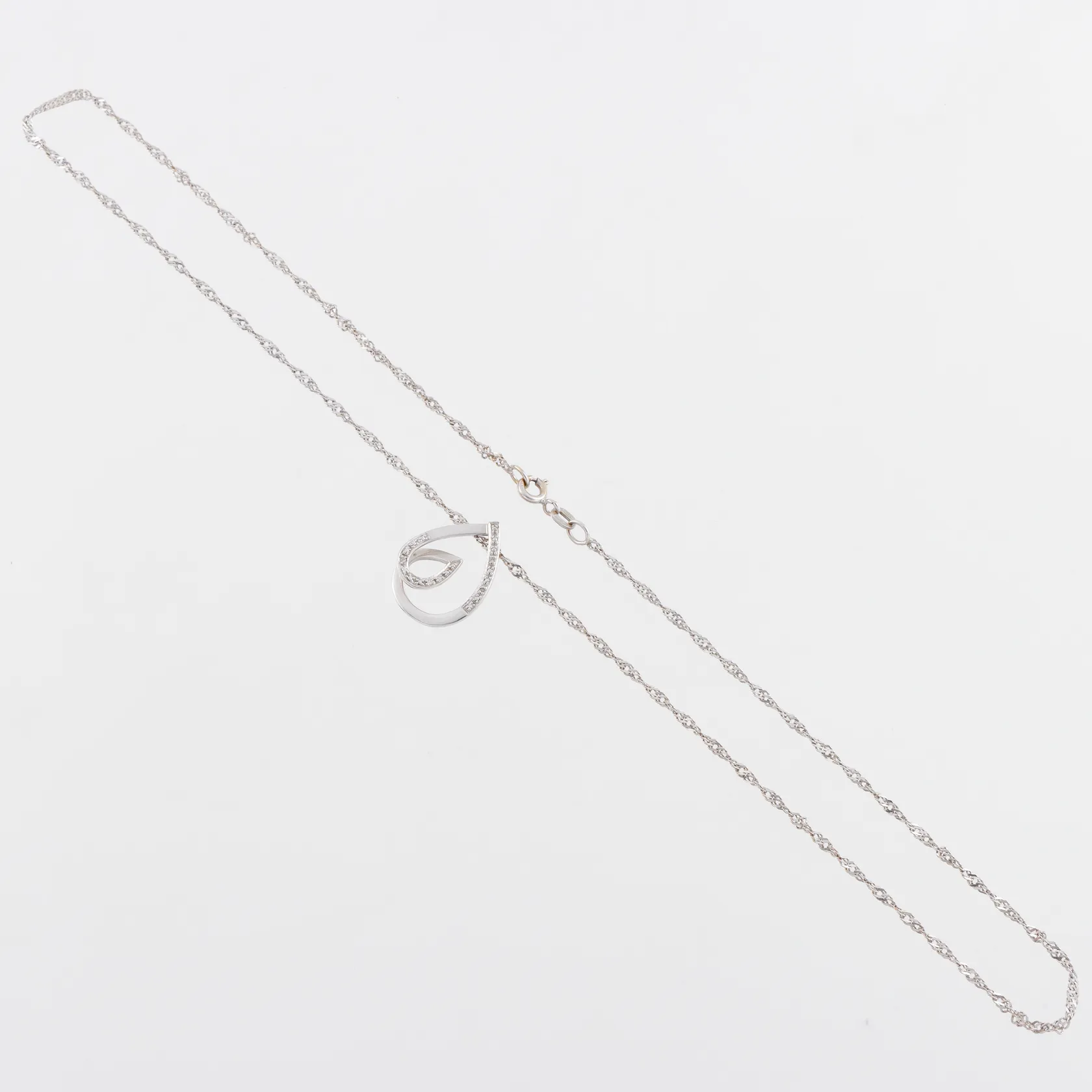 Kedja Singapore med hänge diamanter 18k vitguld,längd ca 44 cm,hängets höjd ca 20.2 mm, Balestra. Vikt: 4,3 g.