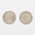 Mynt 2 st 2 kronor 1950, 400/1000 silver. Vikt: 28 g.