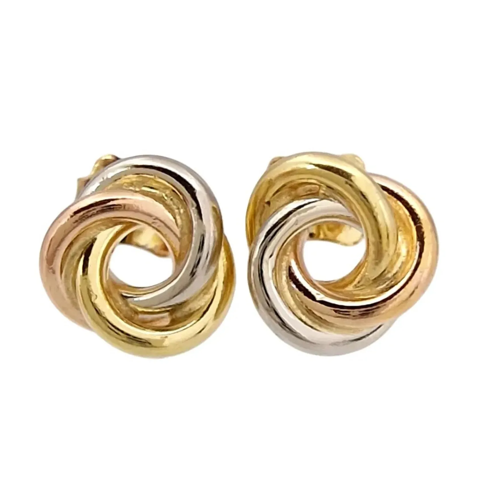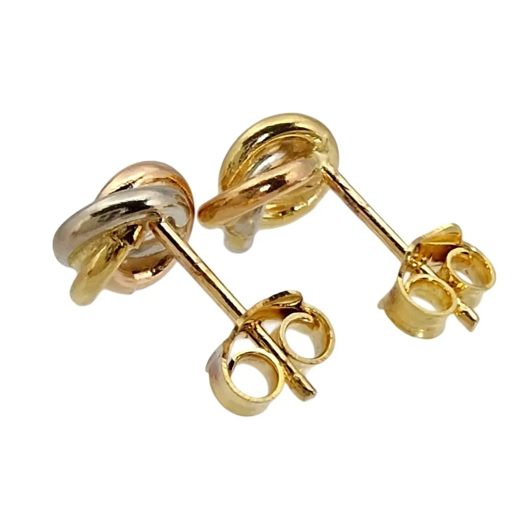Örhängen Knutar 18K guld trefärgad modell, storlek 7,5 x 7,5 mm, originalploppar, fint skick Vikt: 2,2 g.