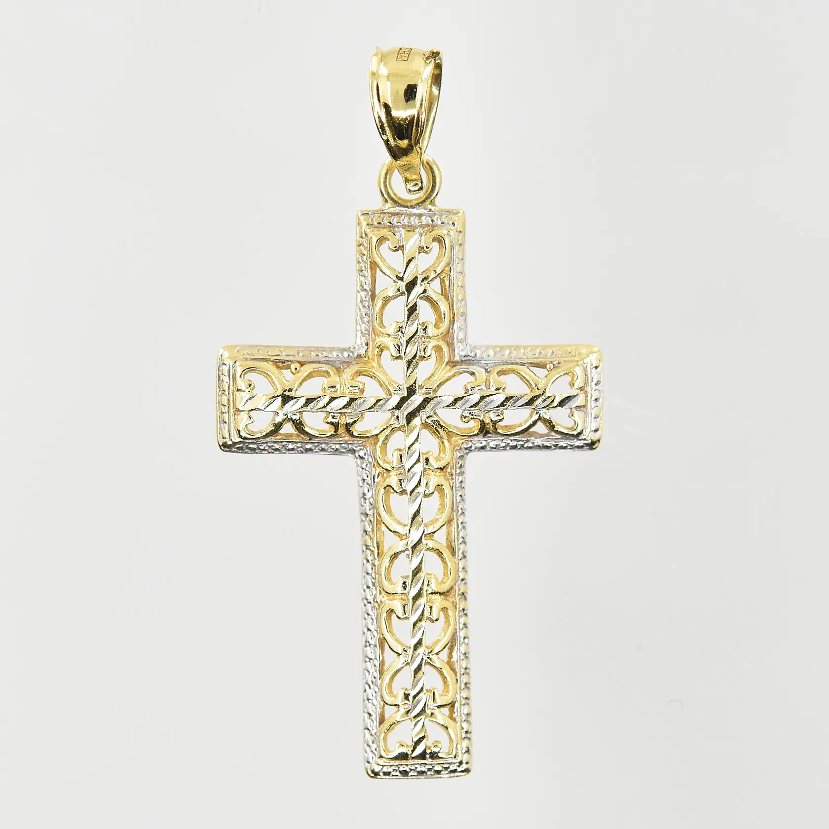 Hänge kors, längd 30 mm, bredd 16 mm, gulguld/vitguld, 18K. Vikt: 1,2 g.