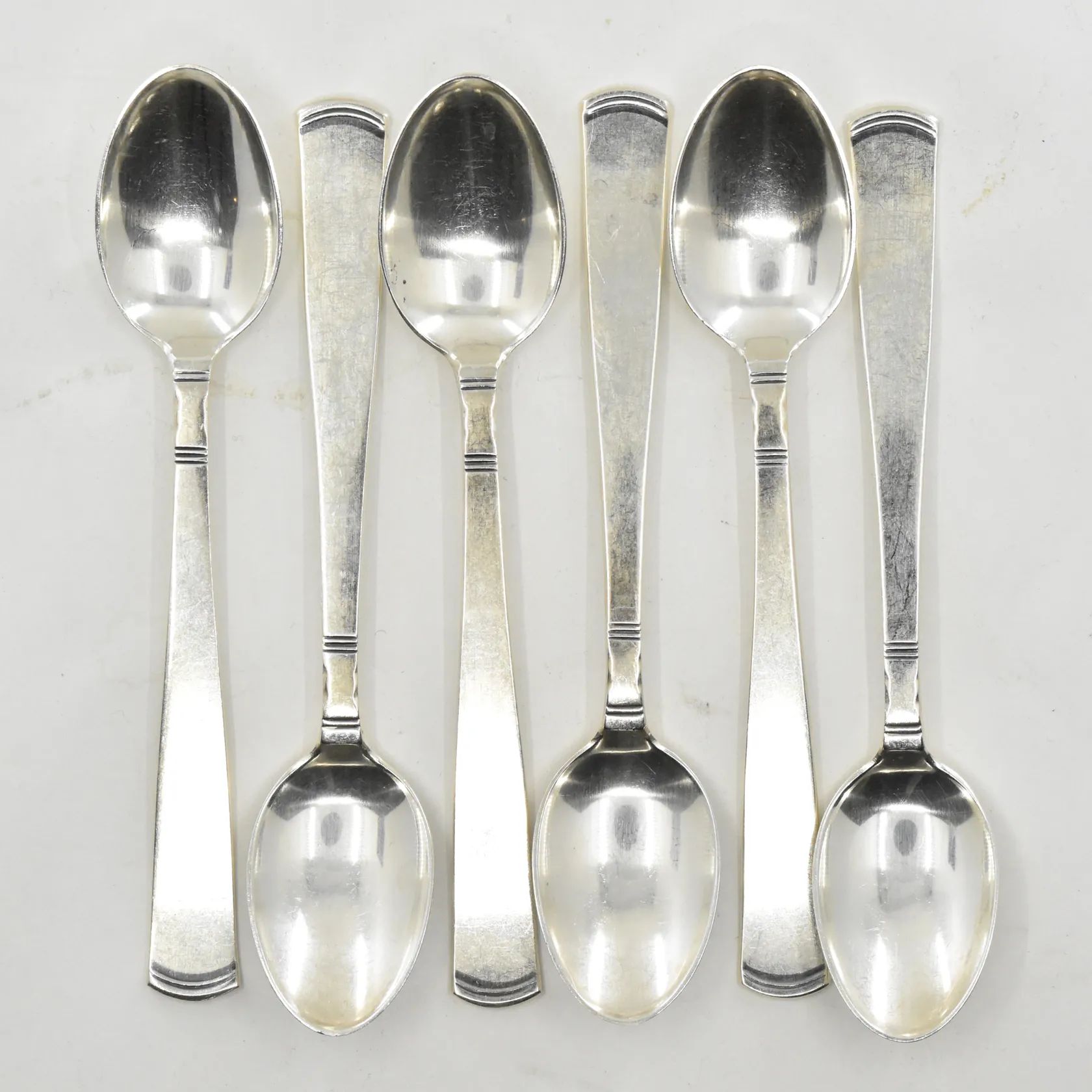 6 skedar modell Rosenholm, GAB, R9/1967, O9/1964, längd 12 cm, 830/1000 silver. Vikt: 94,4 g.