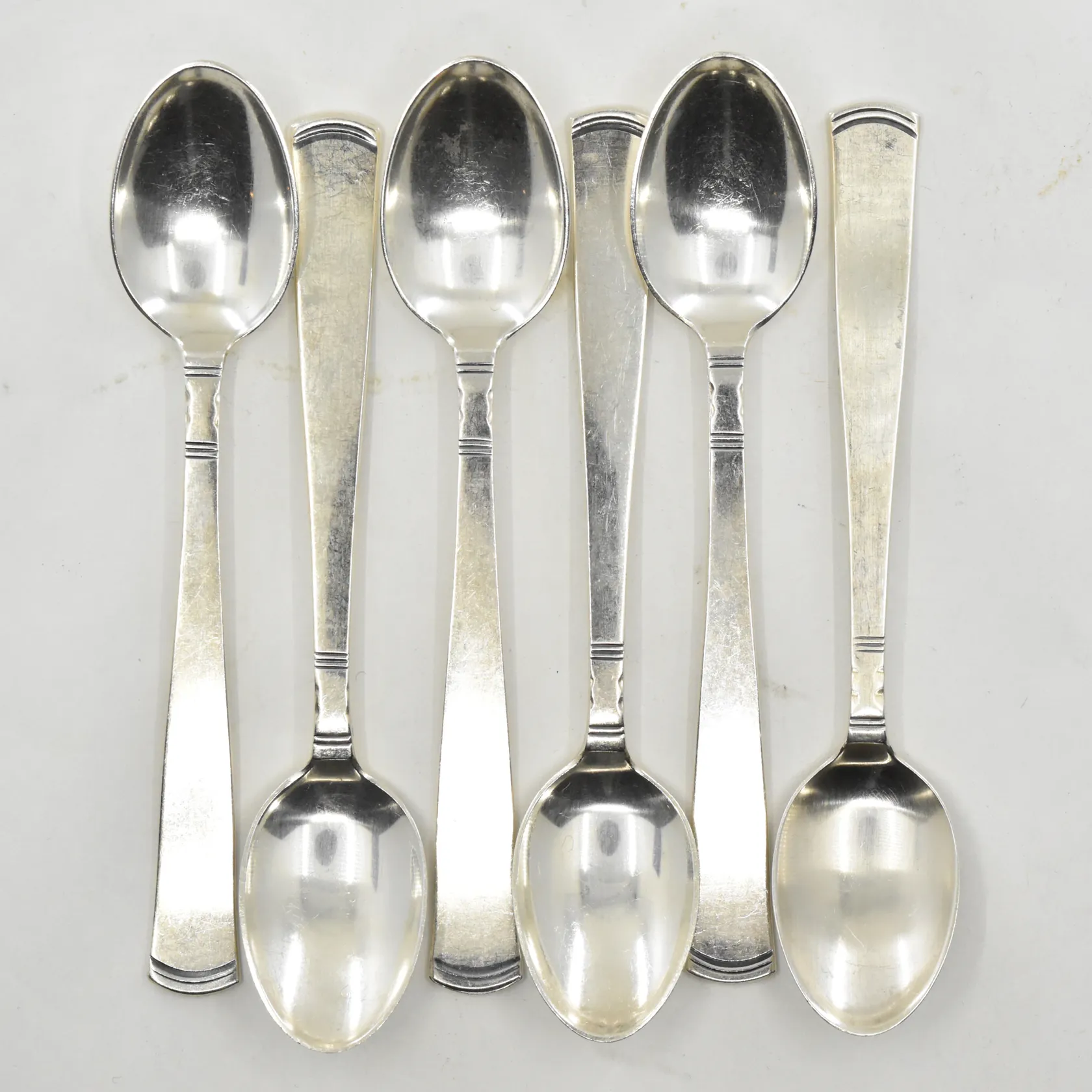 6 skedar modell Rosenholm, GAB, 1960-tal, längd 12 cm, 830/1000 silver. Vikt: 97,8 g.