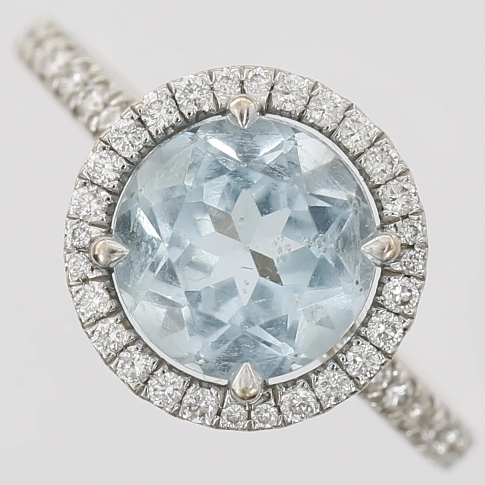 Ring med topas samt diamanter, topas ca 2,25ct, briljantslipade diamanter 8 x ca 0,005ct samt 52 x 0,01ct, totalt ca 0,56ct, stl: 15½, 18K vitguld Vikt: 3,5 g.
