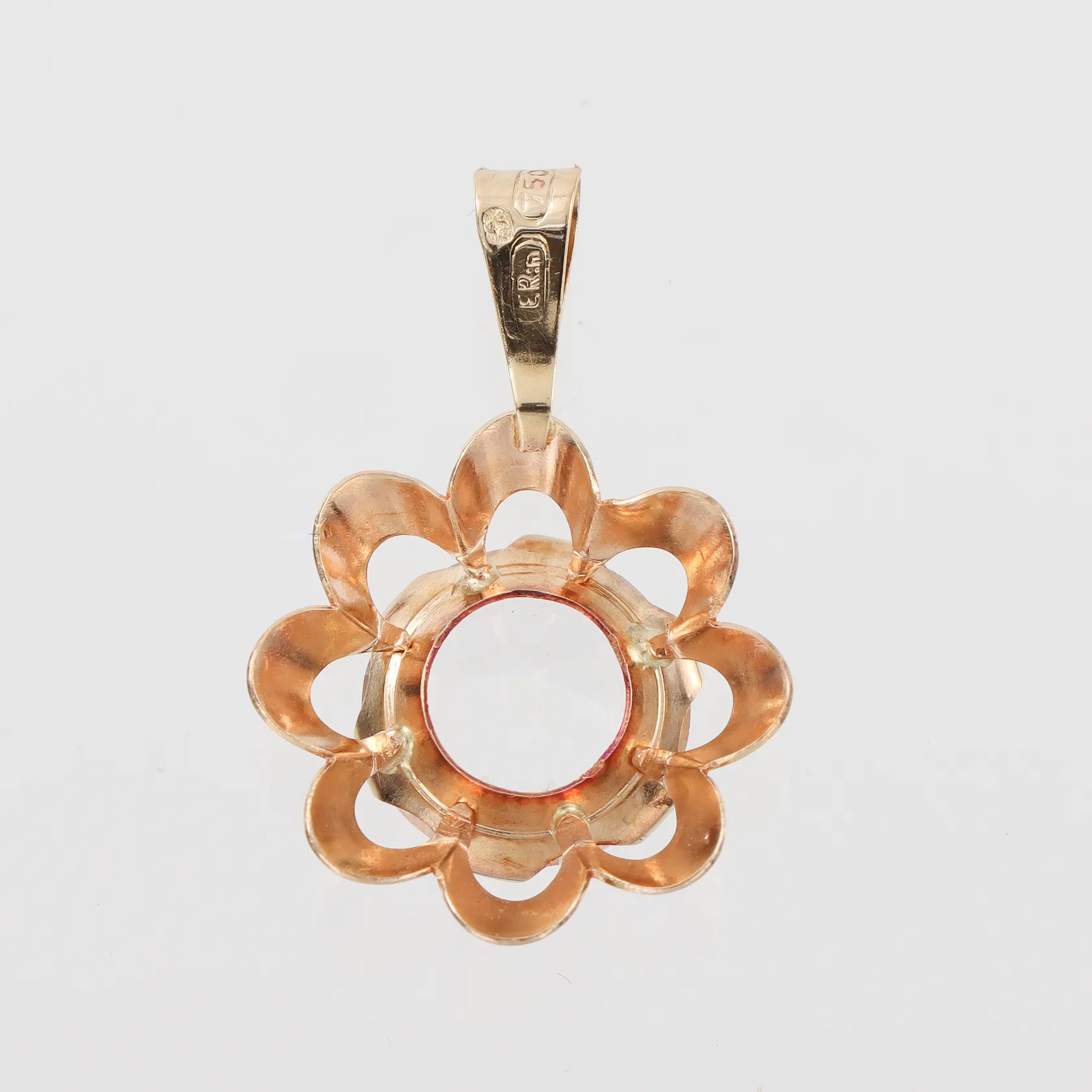 Hänge med vit sten, stämplad Finland, höjd med ögla ca 24 mm, 18k. Vikt: 1,6 g.