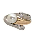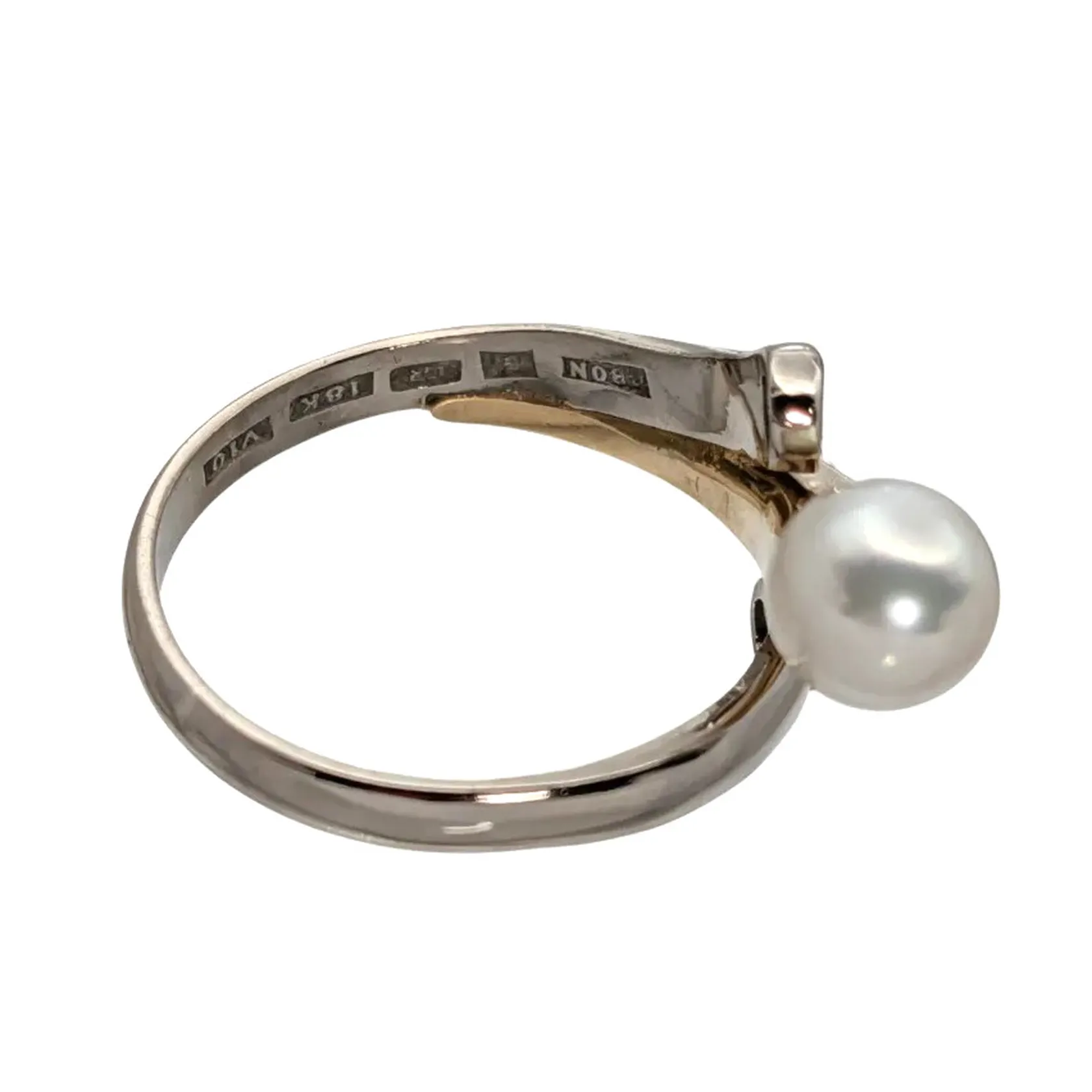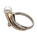 Diamantring 18K guld tvåfärgad modell odlad Pärla Ø 6,5 mm, blåvitrosa ton, god lyster, Diamanter 2 x 0,05ct, Guldsmed Björn Nilsson AB (GBON), Kristianstad, Ø17¾ mm, bredd 2,5 - 13 mm, fint skick Vikt: 5,8 g.