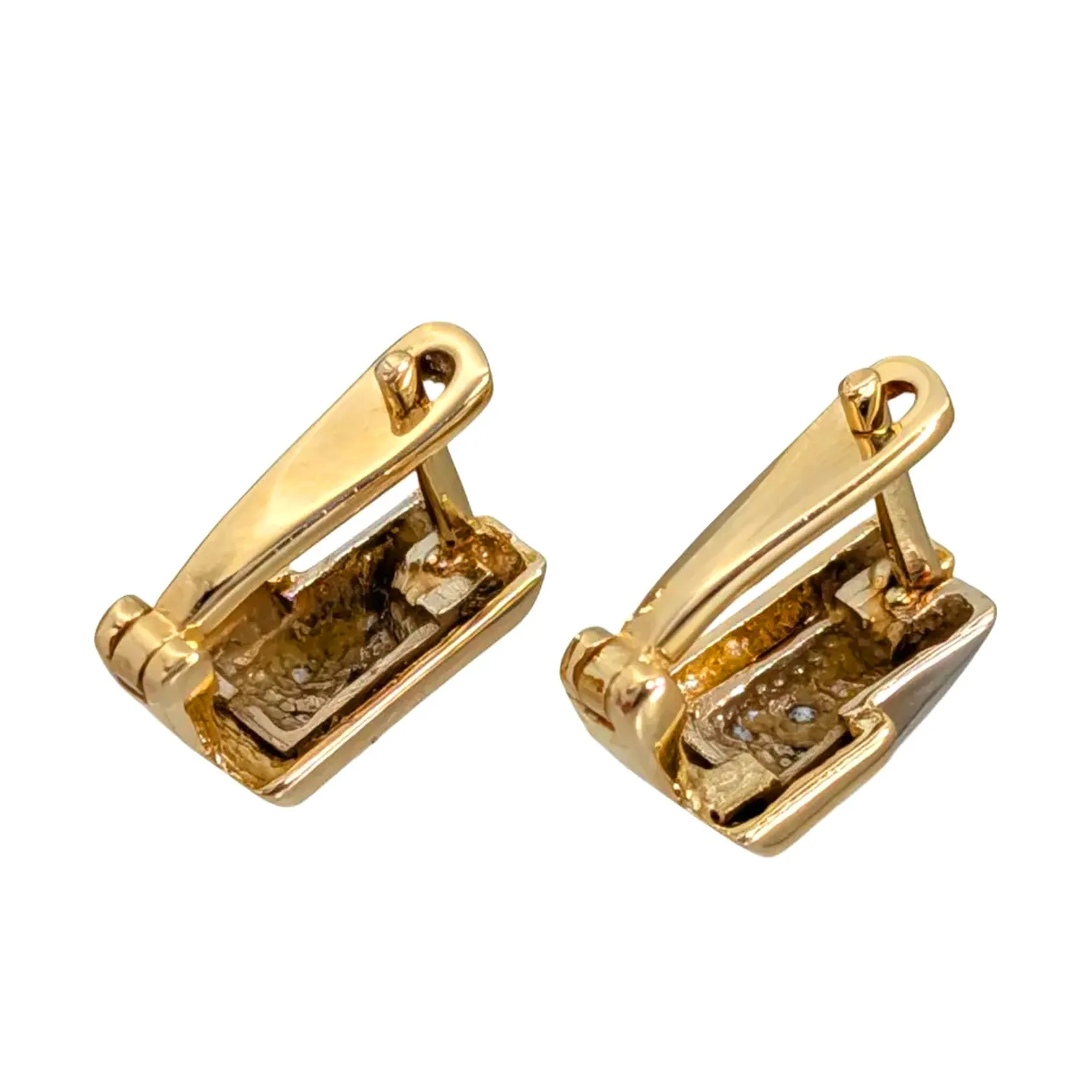 Örhängen 14K guld tvåfärgad modell, delvis sidenmatterade, vita stenar, örhängenas längd 12 mm, bredd 7 mm, fint skick, stenar utan anmärkning Vikt: 3,6 g.