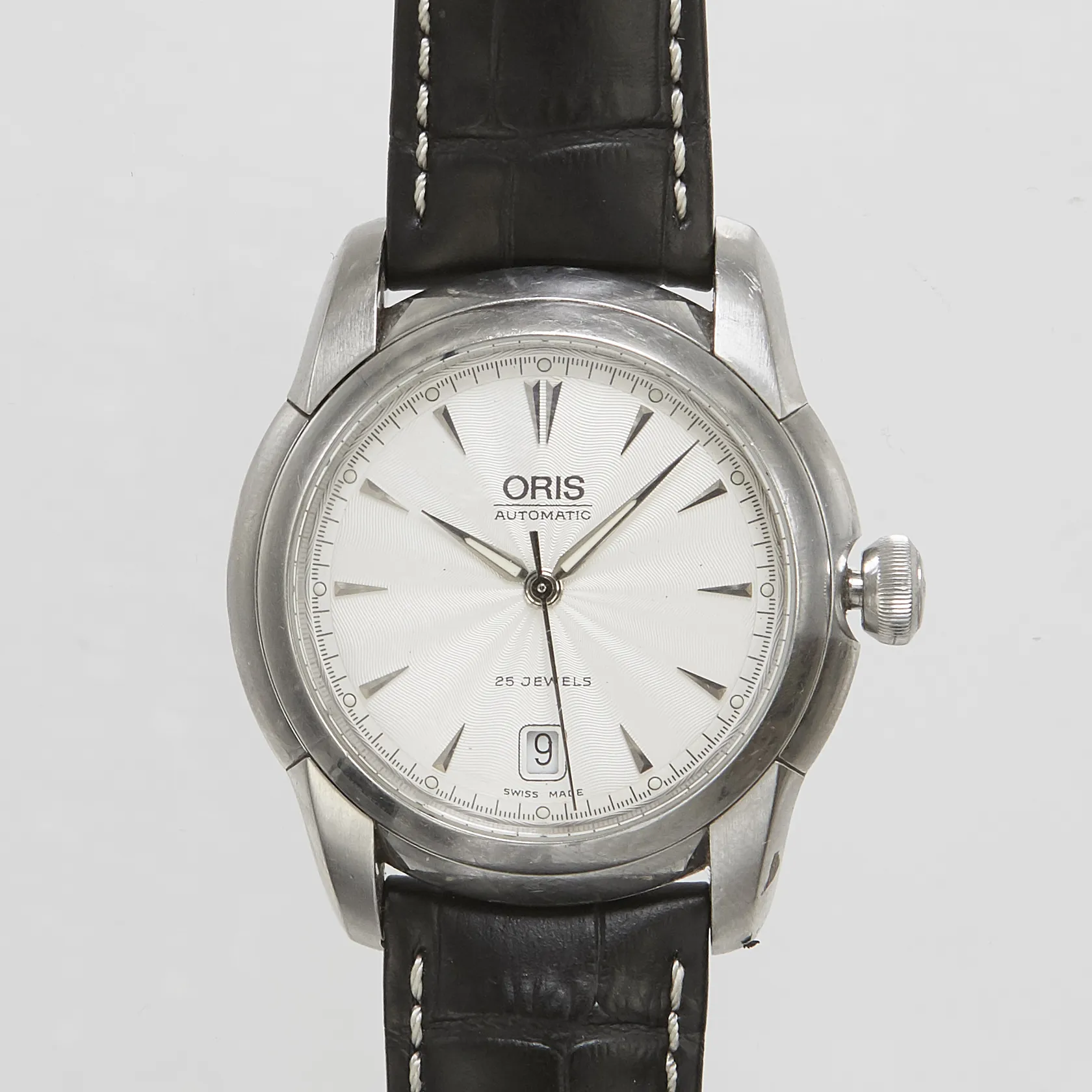 Herrur Oris Artelier Date, stål, 40,5mm, automatisk, refnr 7544, serienr 22-94530, Cal. 633, datum, safirglas, läderband ej original, inga tillbehör.