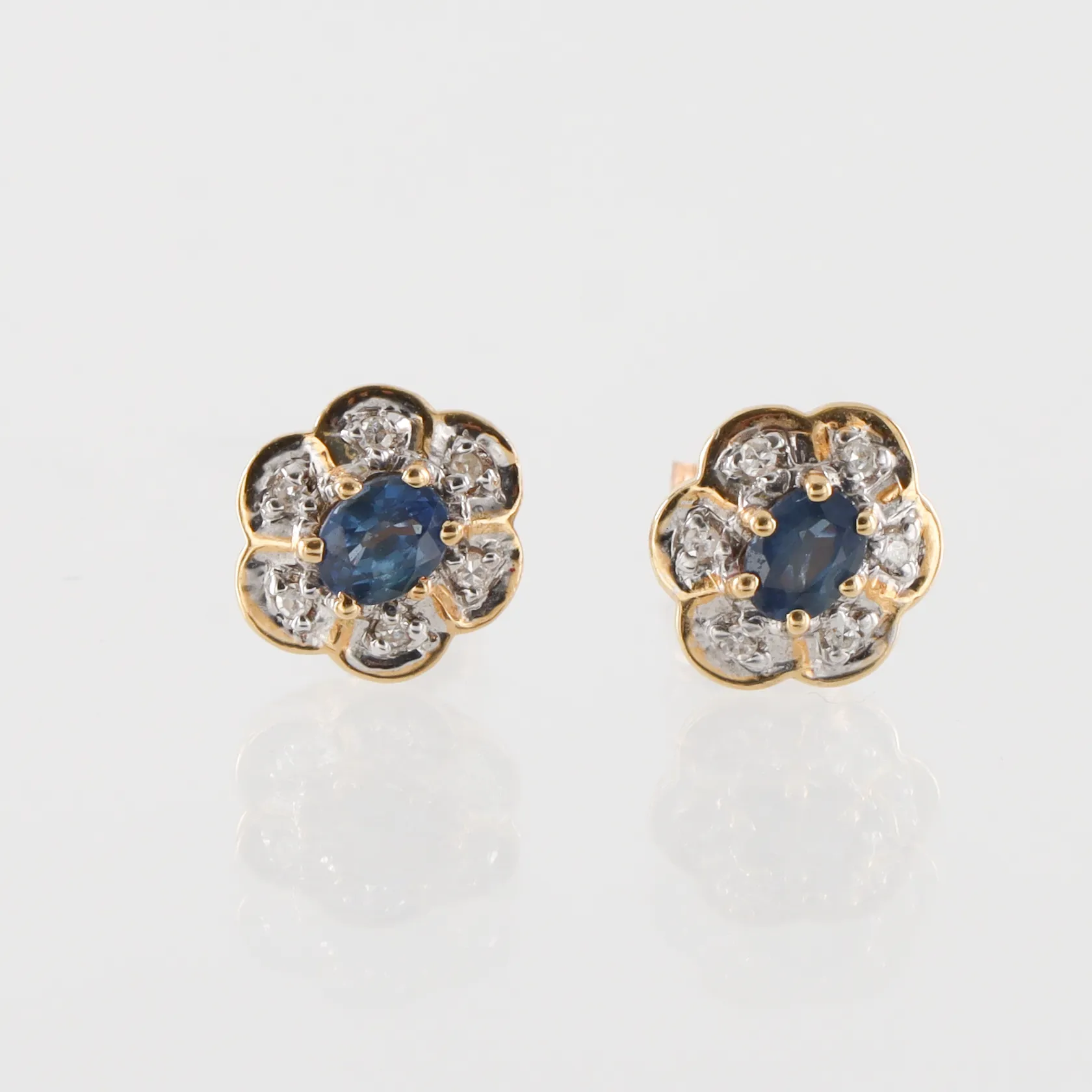 Ett par örhängen carmosé med safir, diamanter ca 12x0,005ct, höjd 8,8mm, 18K Vikt: 1,8 g.