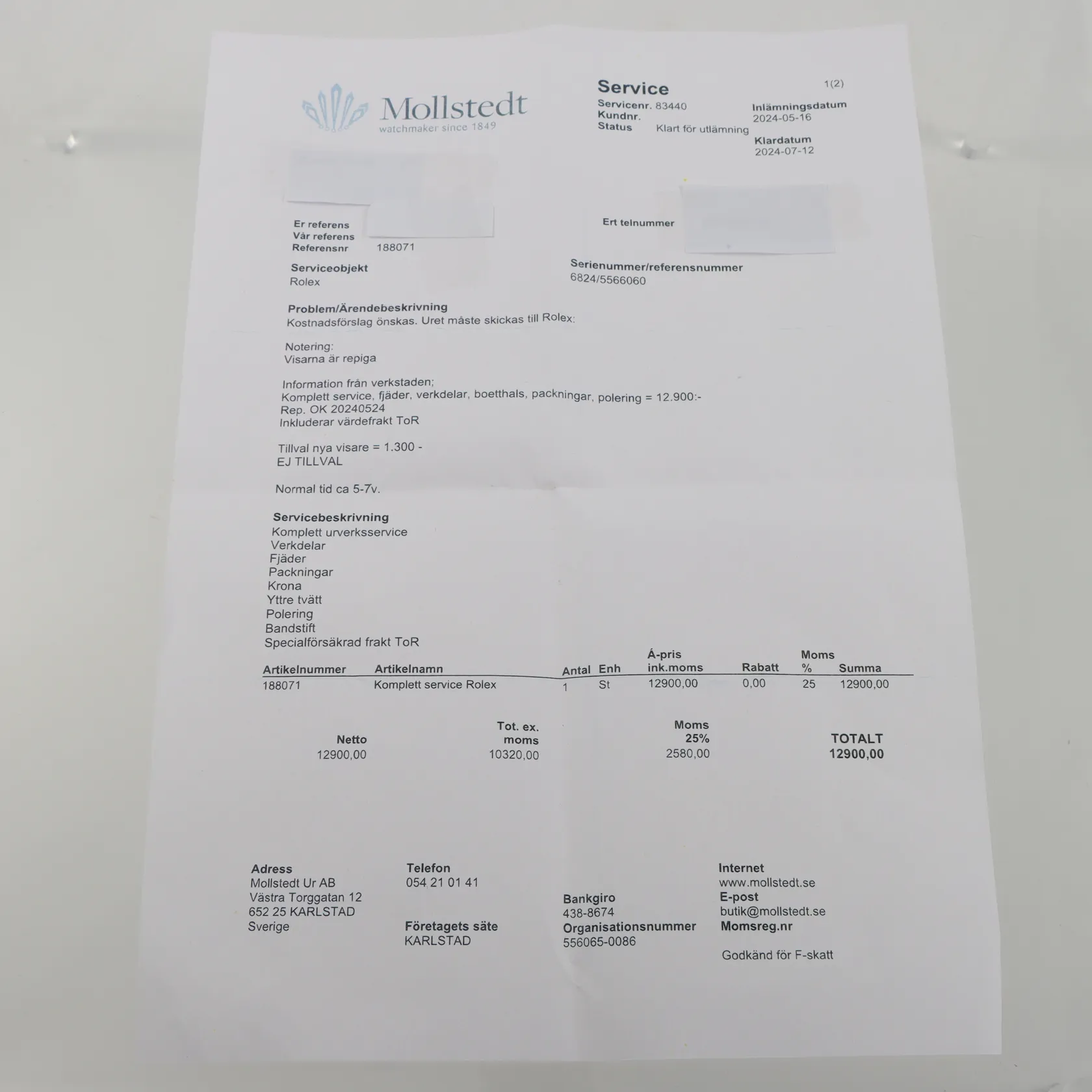 Damarmbandsur Rolex Oyster Perpetual Datejust serie/referensnummer 6824/5566060, Ø ca 30mm, plexiglas, box, certifikat Juni 86, servad 2024-07-12.