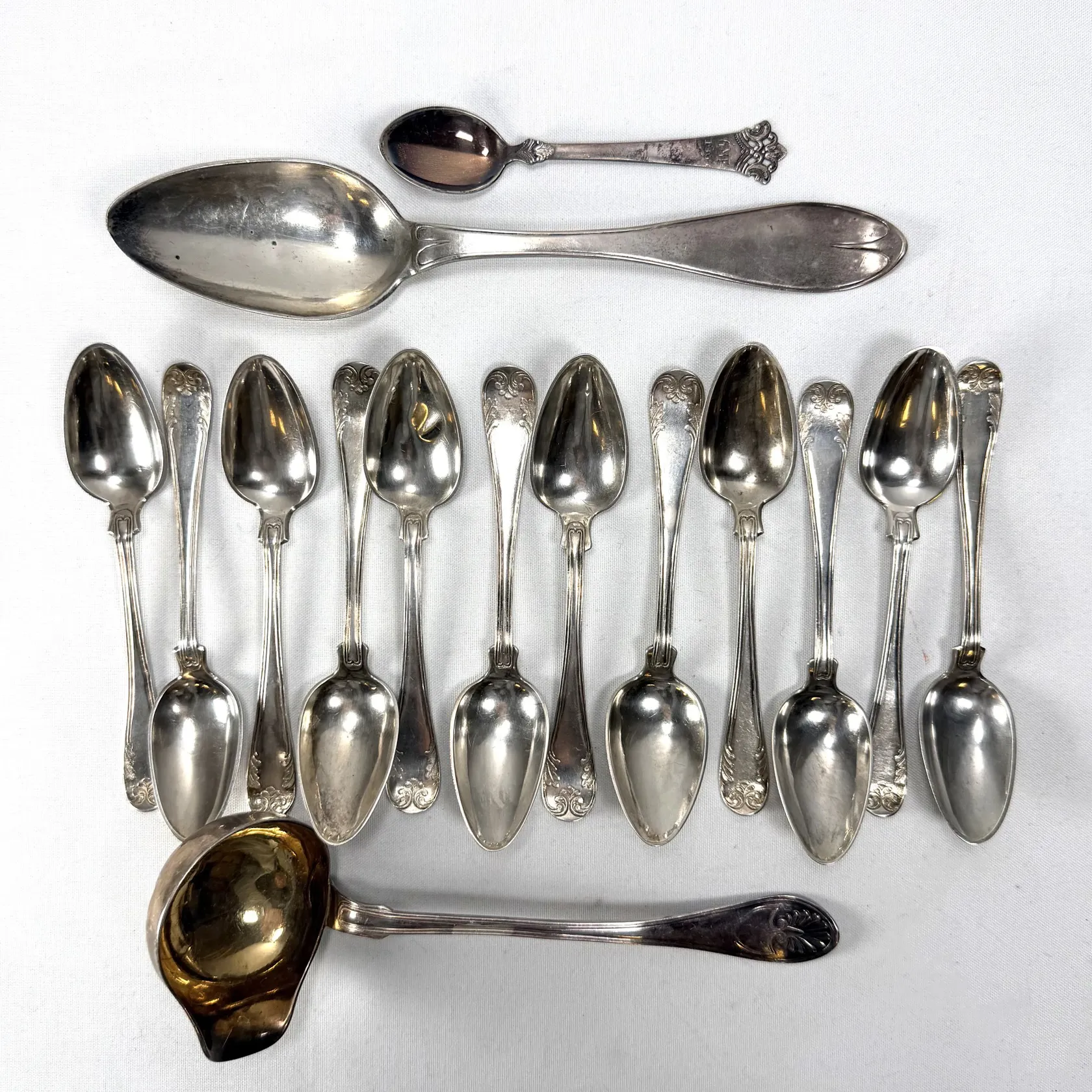 Parti skedar, 1800-tal, gravyr, slitage, silver 830/1000 Vikt: 335 g.