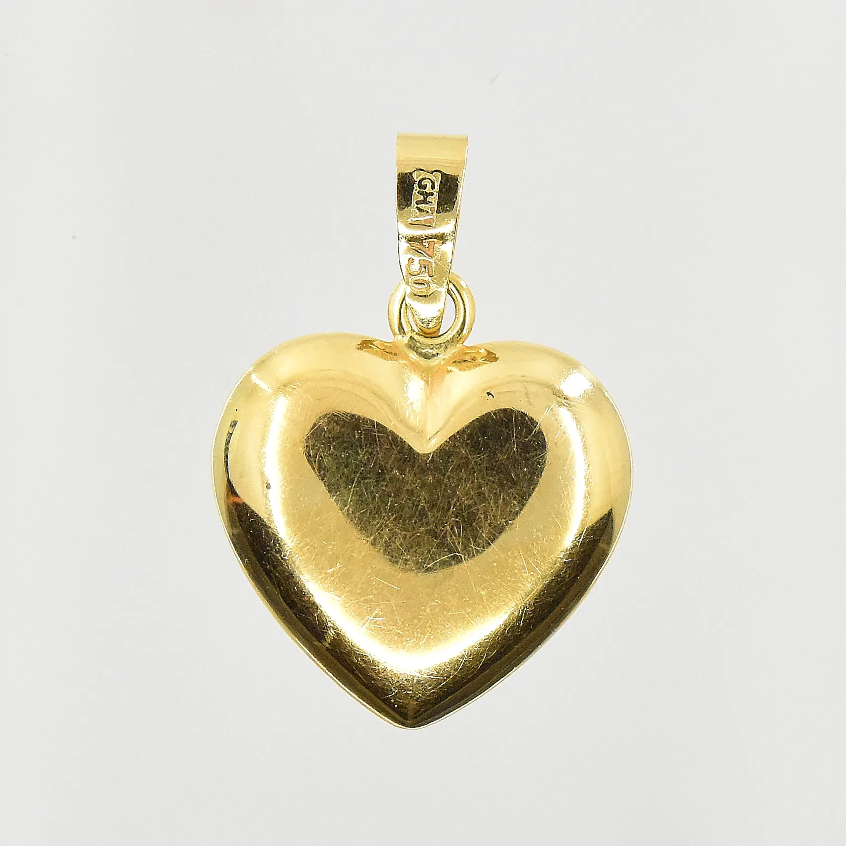Hänge hjärta, längd 18 mm, bredd 14 mm, 18K. Vikt: 1,1 g.