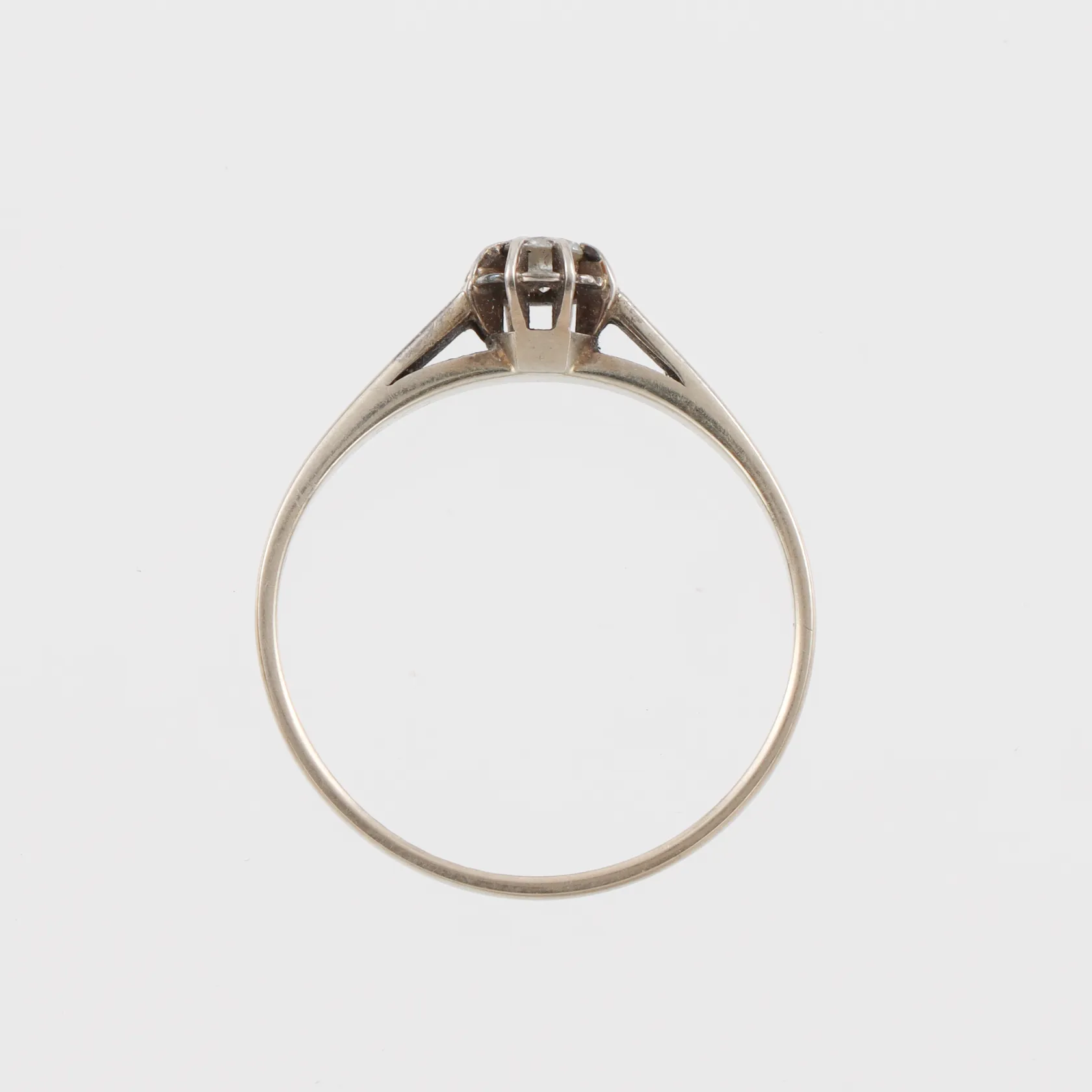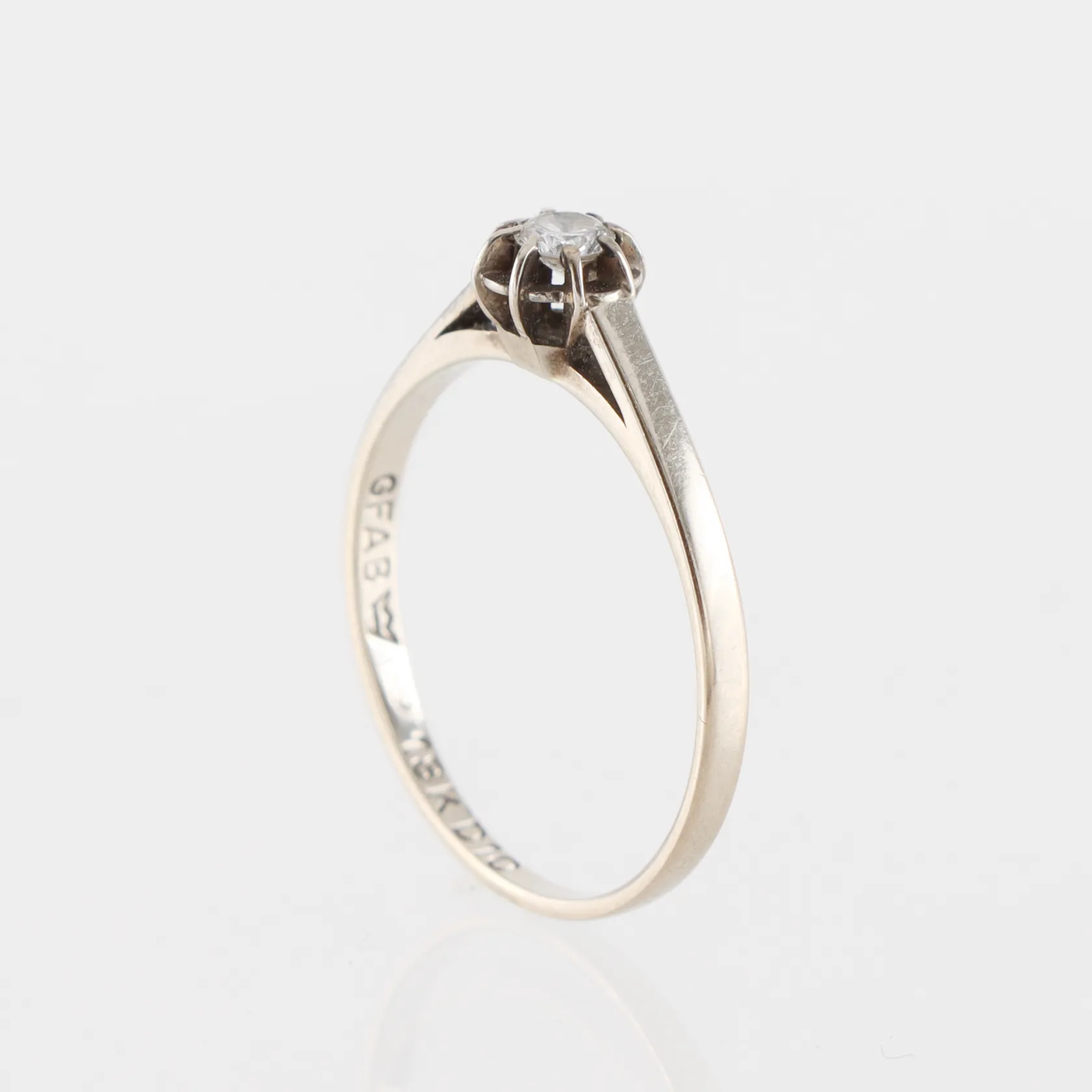 Ring vitguld med diamant 0,10ct enligt inskription, Guldfynd AB, storlek 17 mm, bredd 1.4-5.1 mm, 18k. Vikt: 1,6 g.