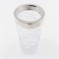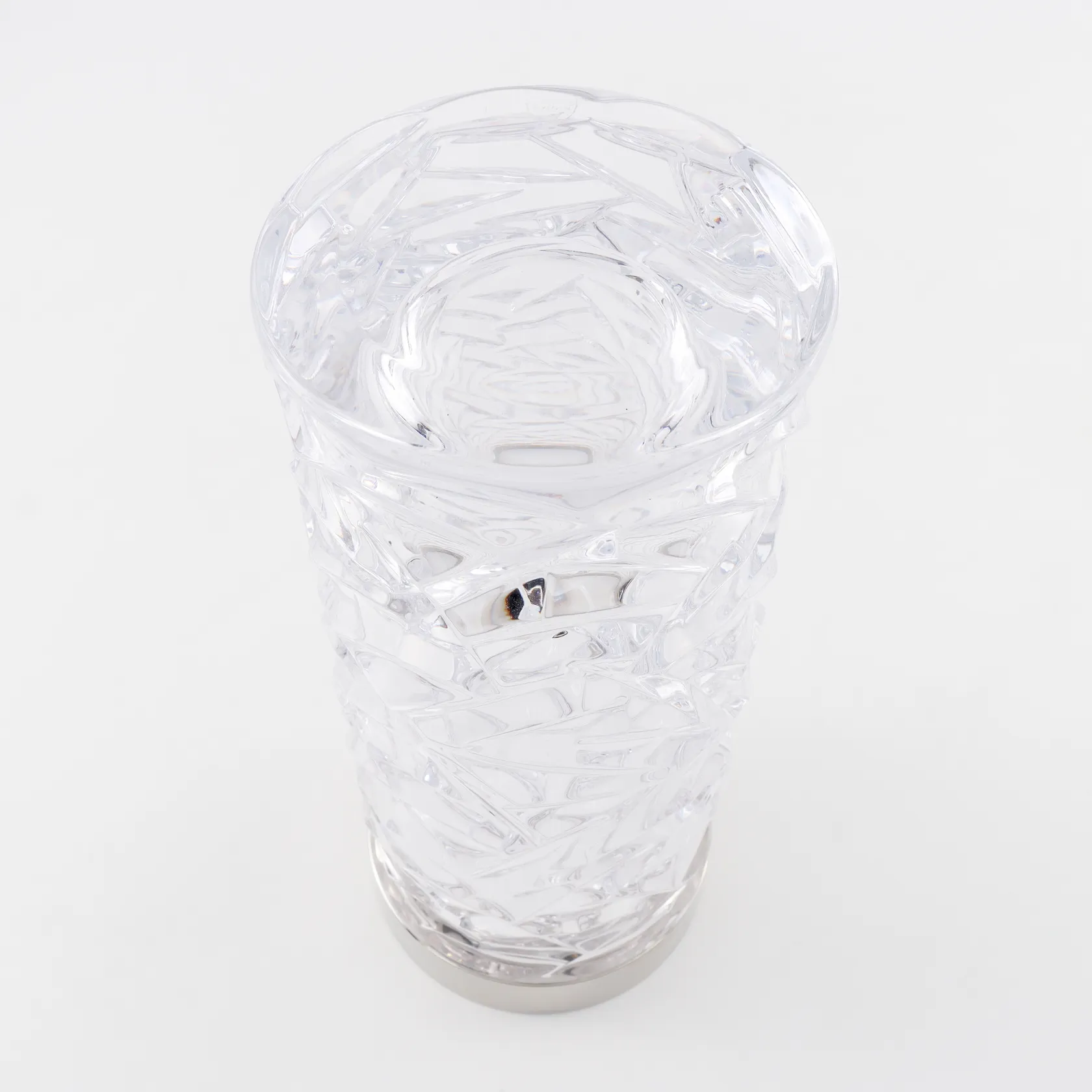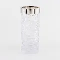 Vas Orrefors Carat design Lena Bergström, kant i rostfritt stål, höjd 24 cm, etikettmärkt. Skickas med postpaket.