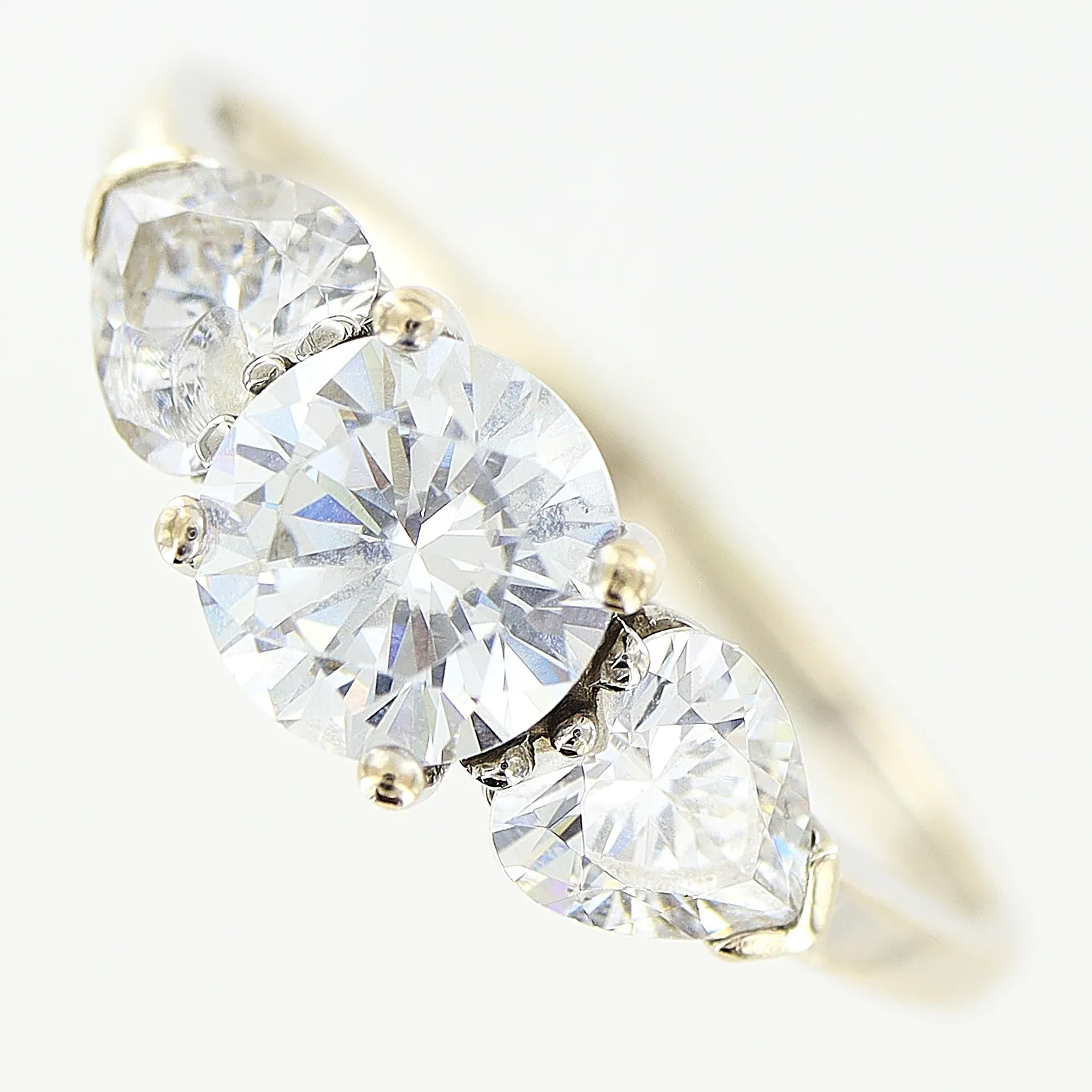 Ring vita stenar, stl 18¾, bredd 1,5-6mm, vitguld, i behov rodiering, nagg i en utav sidostenarna, 14K Vikt: 2,6 g.