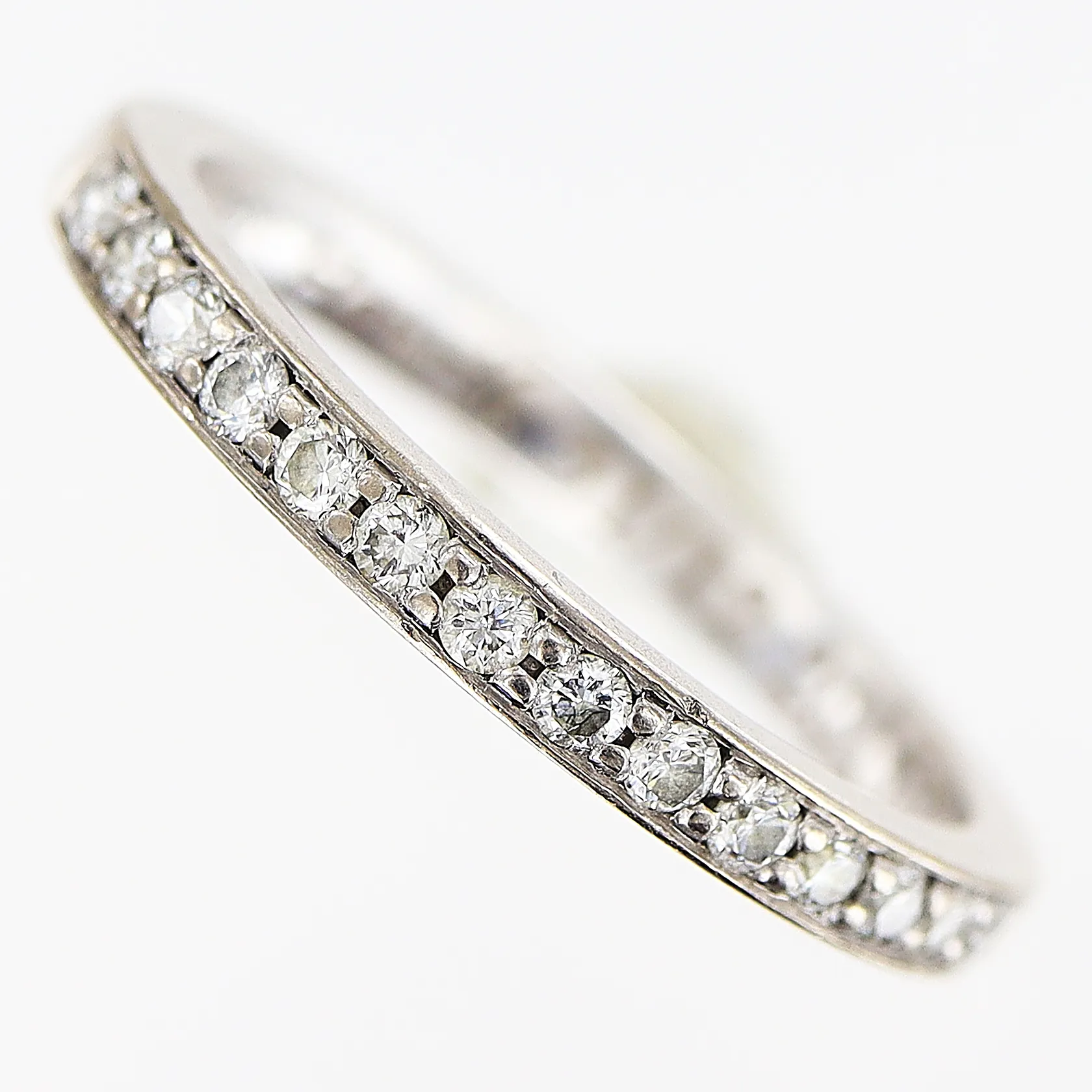 Ring diamanter 14 x ca 0,02ct, stl 18, bredd 2,3mm, Schalins, gravyr, vitguld, 18K Vikt: 3,7 g.