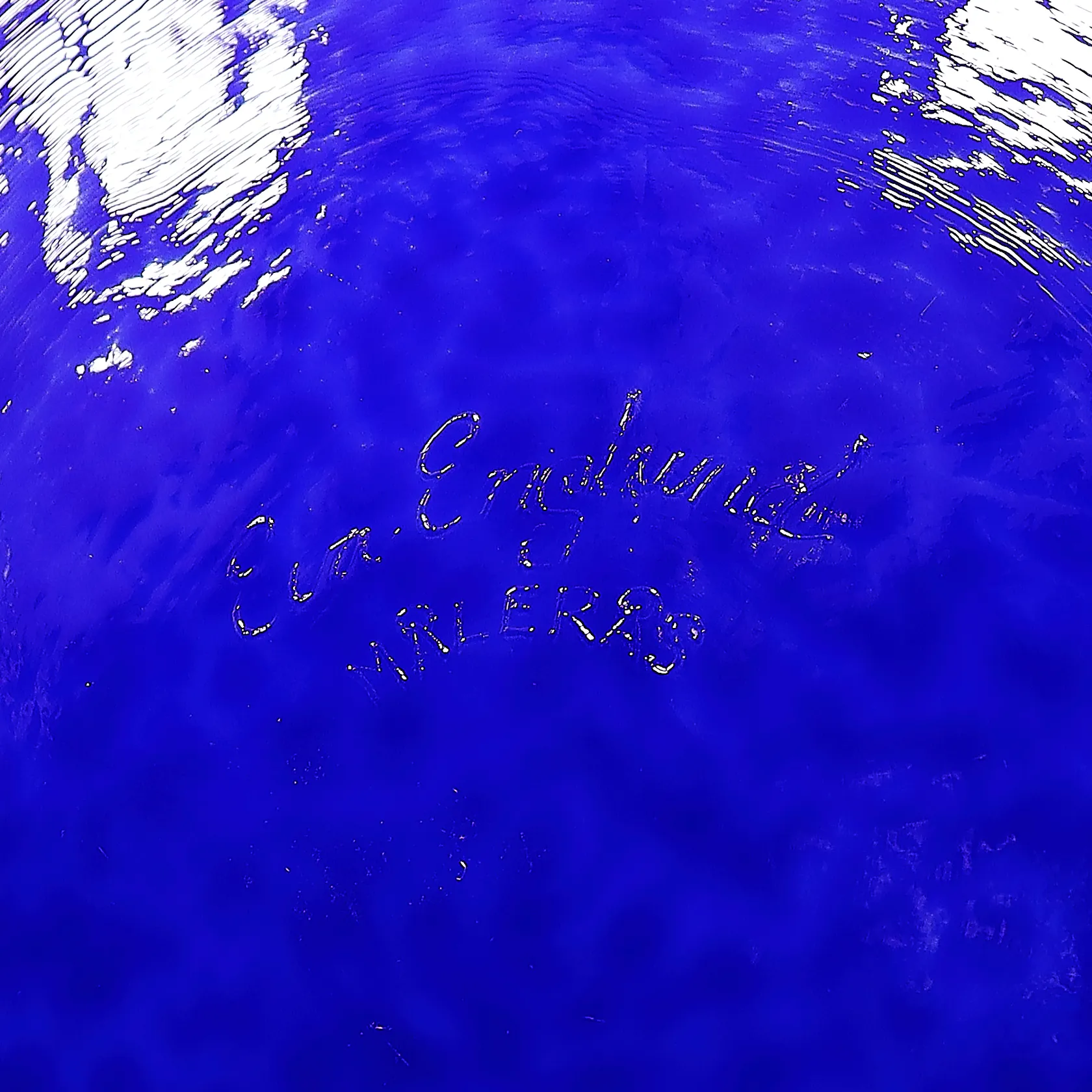 Fat Eva Englund, Målerås, blått glas, Ø35cm, små skav. Skickas med postpaket.