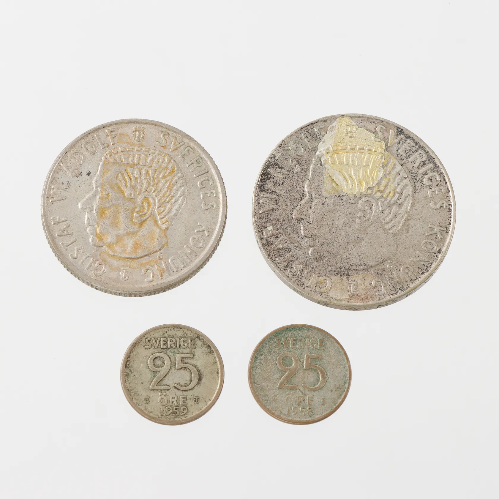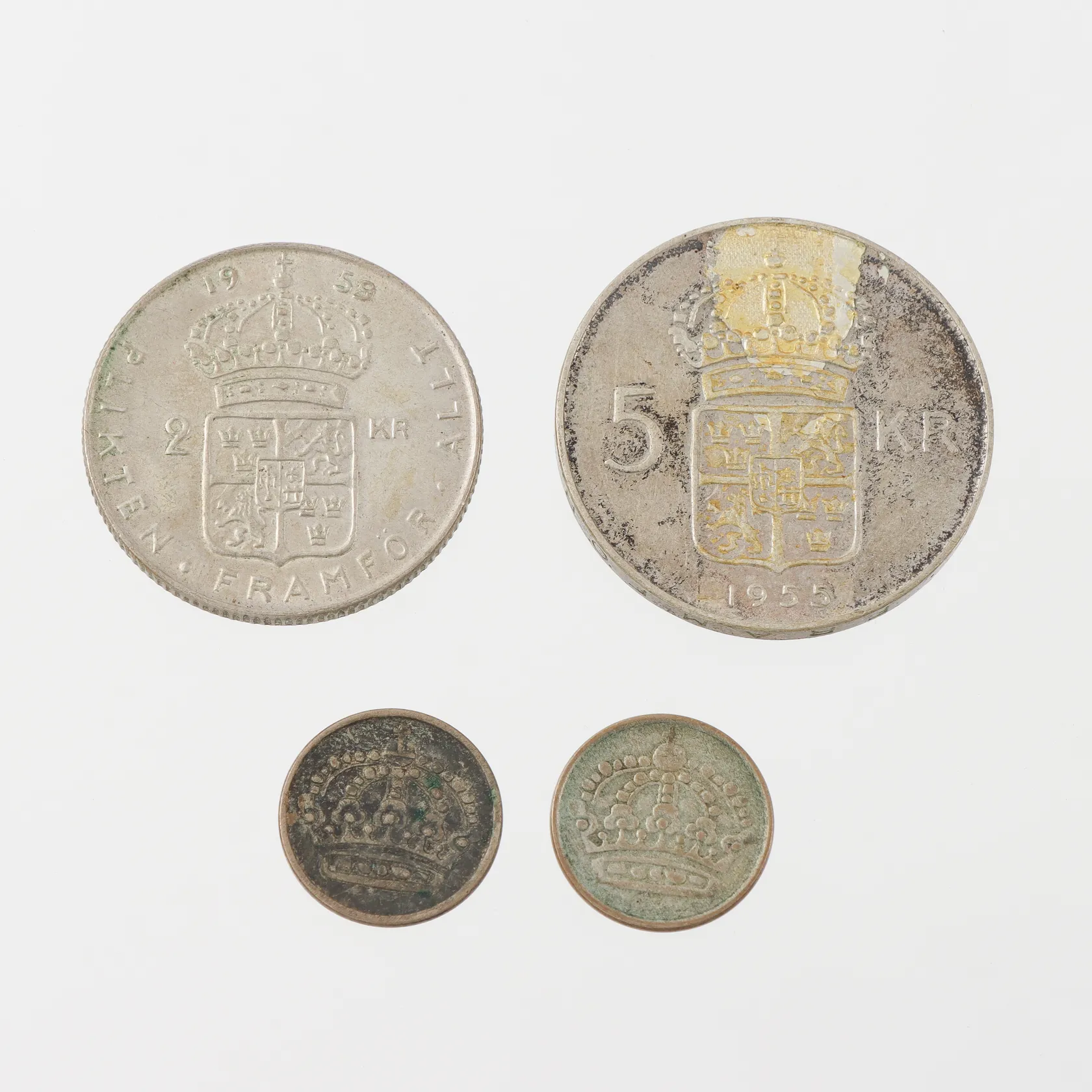 Mynt 4 st silver 400/1000. Vikt: 36,5 g.
