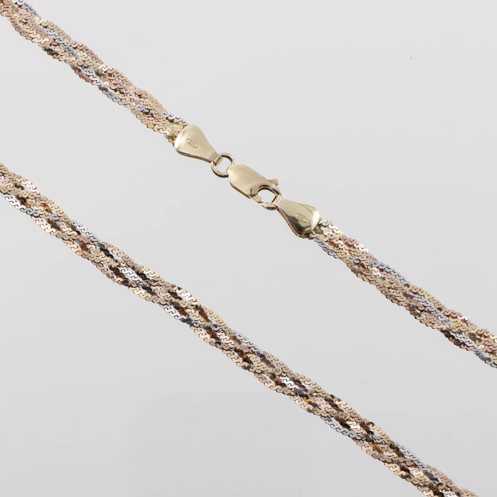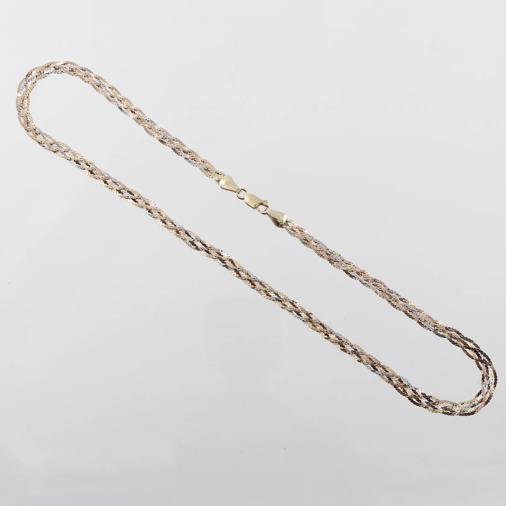 Collier flätat, längd 45cm, bredd ca 5,5mm, Guldfynd, förgyllt silver Vikt: 10 g.