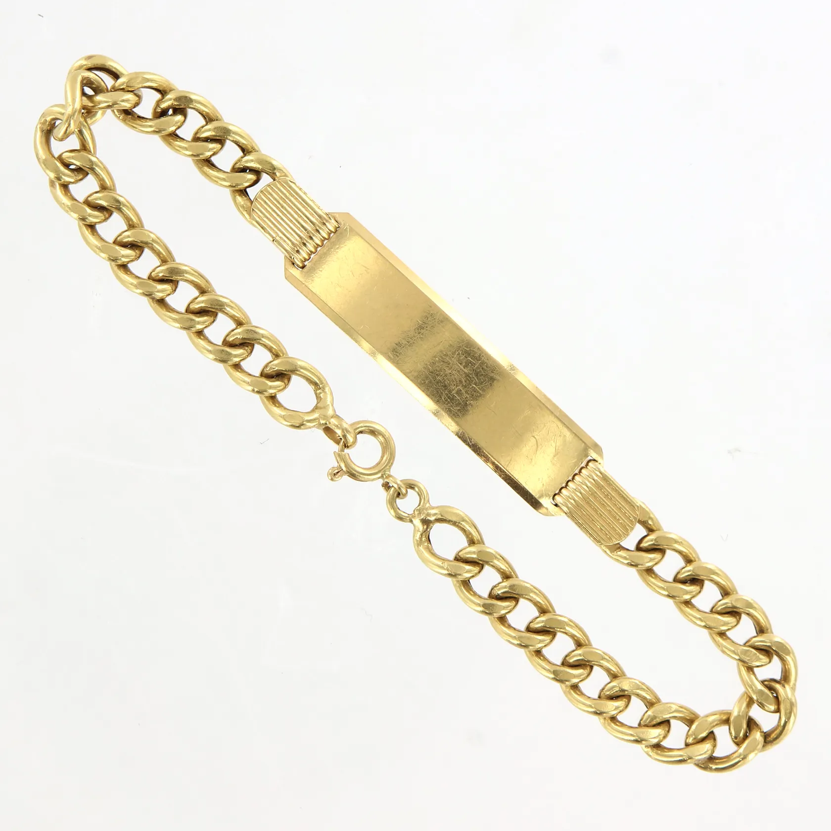 Armband Pansar med platta, 19cm, bredd: 5-8mm, ihåliga länkbitar, 18K Vikt: 9,7 g.